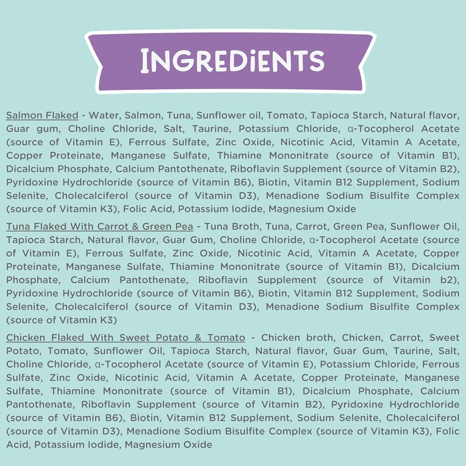 - GRAIN FREE & NON-GMO: Our tuna, salmon, & chicken variety pack is prepared without any grains, artificial additives, or by-products, as our goal is to feed cats the way nature intended. We always source wholesome ingredients to promote optimal health and nutrition.