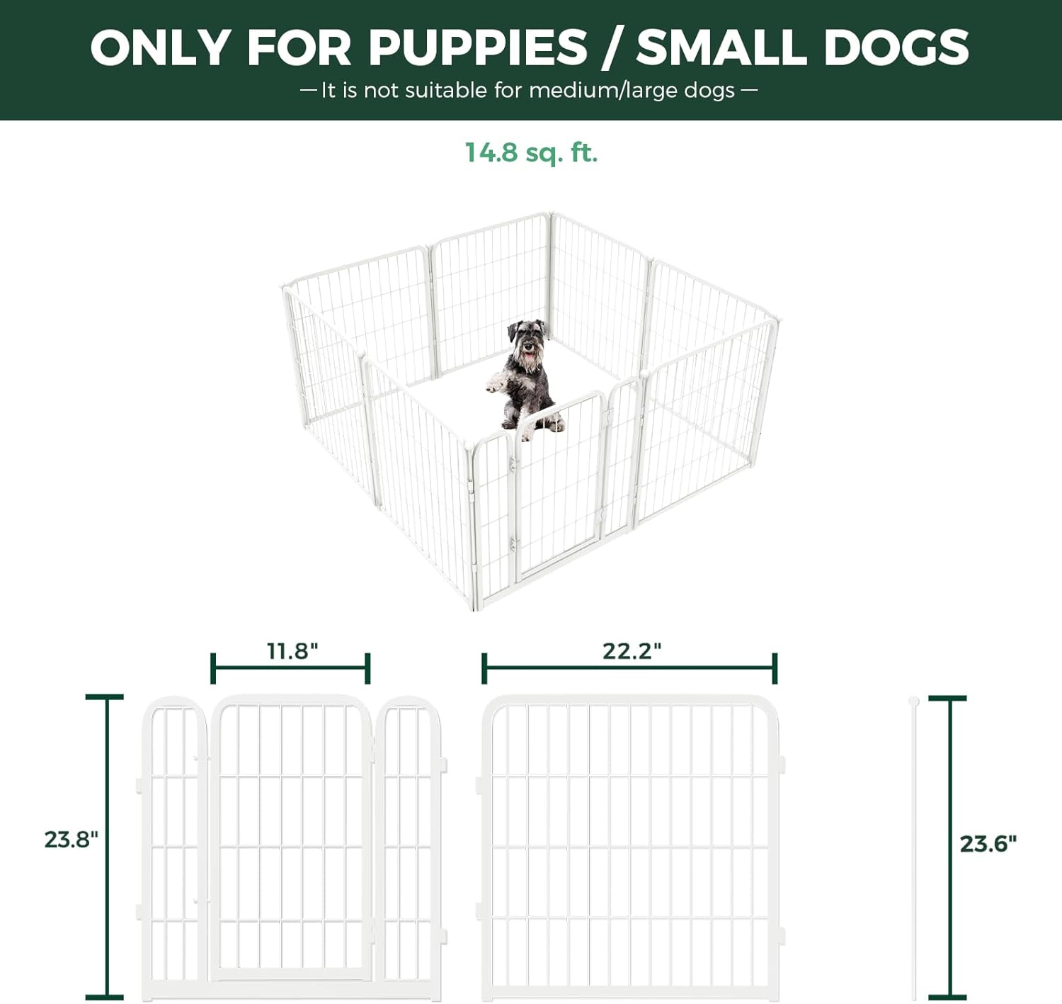 FXW Homeplus Unleashed Indoor Dog Playpen - Stress-Free and Safe Play, Heavy Duty 24 Inch 8 Wire Panels Dog Pen for Puppy and Small Dogs, White│Patented