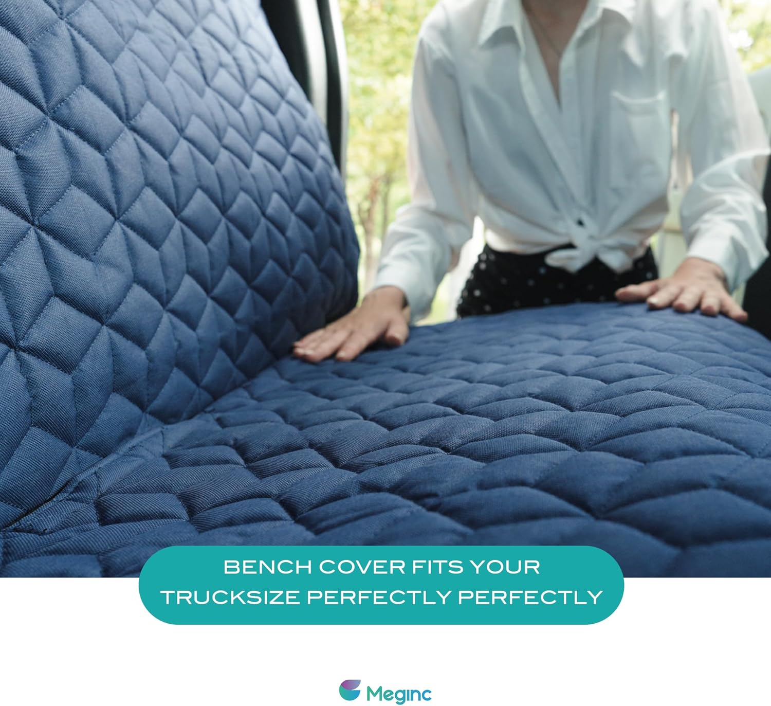- 🚗【Seat Cover Will Not Slip and Slide】Meginc Bench Seat Covers is a full sized truck seat cover and it is firm and will not slip around when you used the seat anchors.There are fixed elastic straps on both sides of the bottom. The bottom seat anchor is inserted into the seat. It is not easy to move when pets playing, and the cushion will not slide.