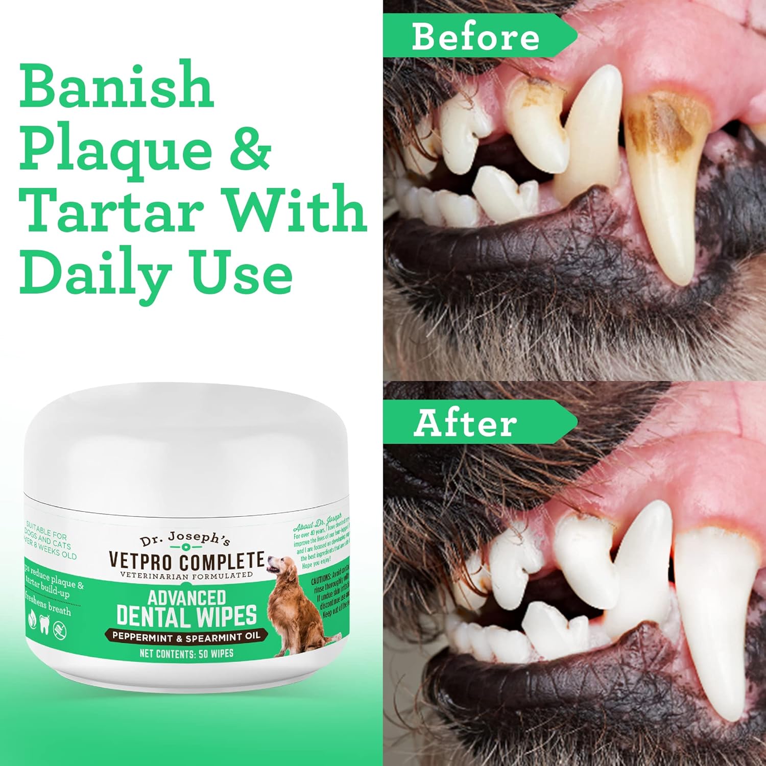 - No-Fuss Teeth Cleaner for Dogs & Cats - With Dr. Joseph’s VetPro Dental Wipes for dogs and cats, you won’t have to wrestle them with a toothbrush. Pull out a wipe, wrap it around your finger, and run it through your dog's teeth and gums.