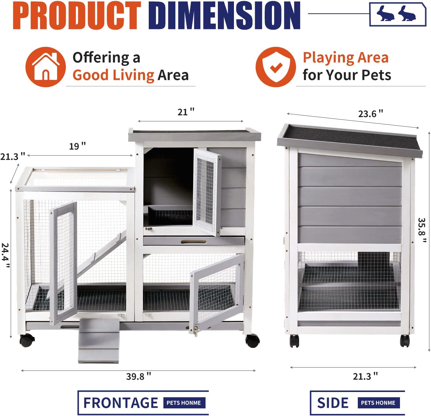 - Comfortable and safe rabbit hutch -- The rabbit hutch is made of environmentally friendly waterproof and non-toxic varnish, while the cedar wood construction is pet-friendly and weather-resistant, and the asphalt roof will effectively protect the small pets inside from wind/rain/snowy weather. Suitable for both indoor and outdoor environments.