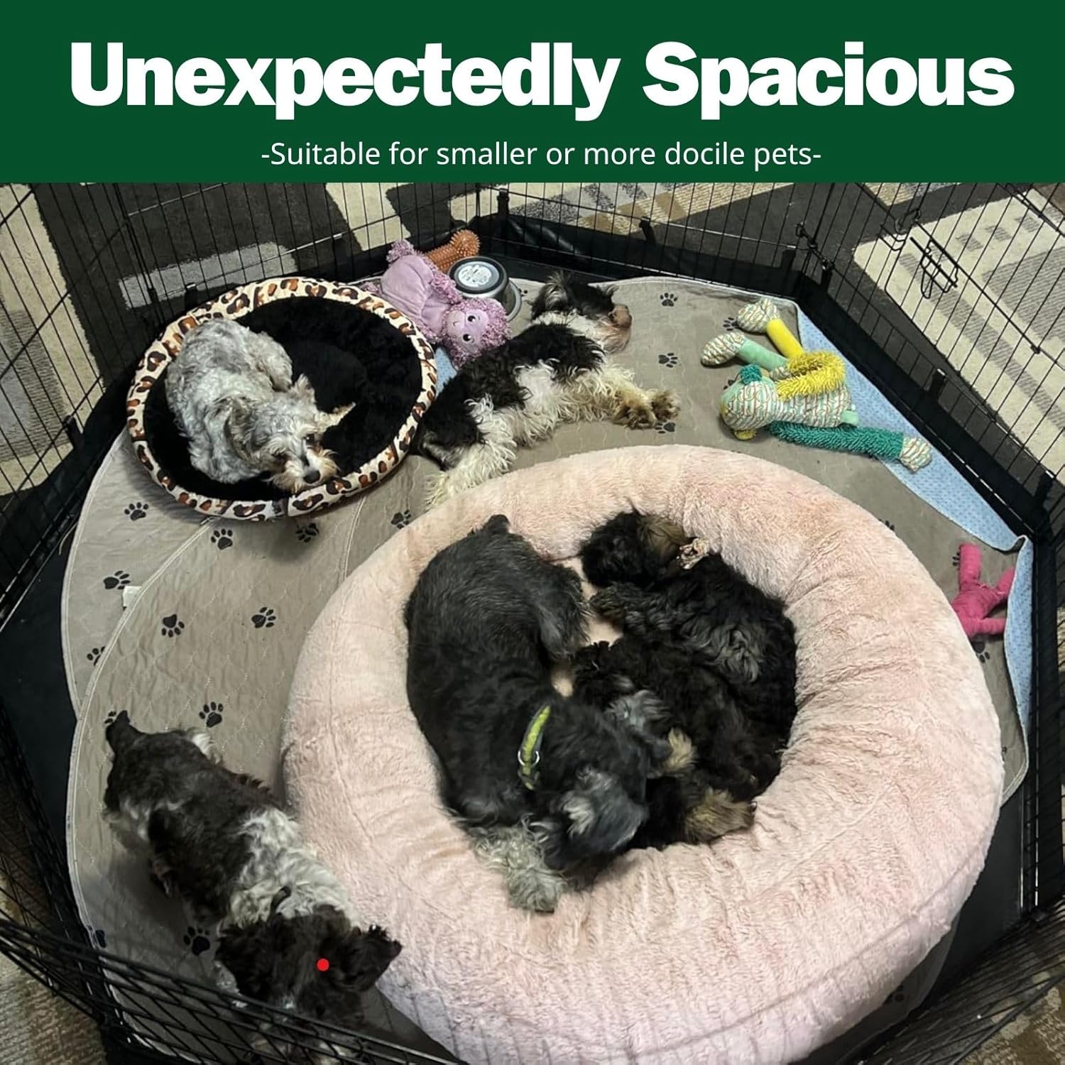 - All-Environment Pet Retreat: Dog pens ideal for small pets like puppies, chicken and rabbits, this puppy exercise fence adapts seamlessly to indoor and outdoor environments. Secure it outdoors with 8 included ground stakes, offering your pets ample freedom. Dog playpen outperforms traditional crate kennels with a more spacious area.