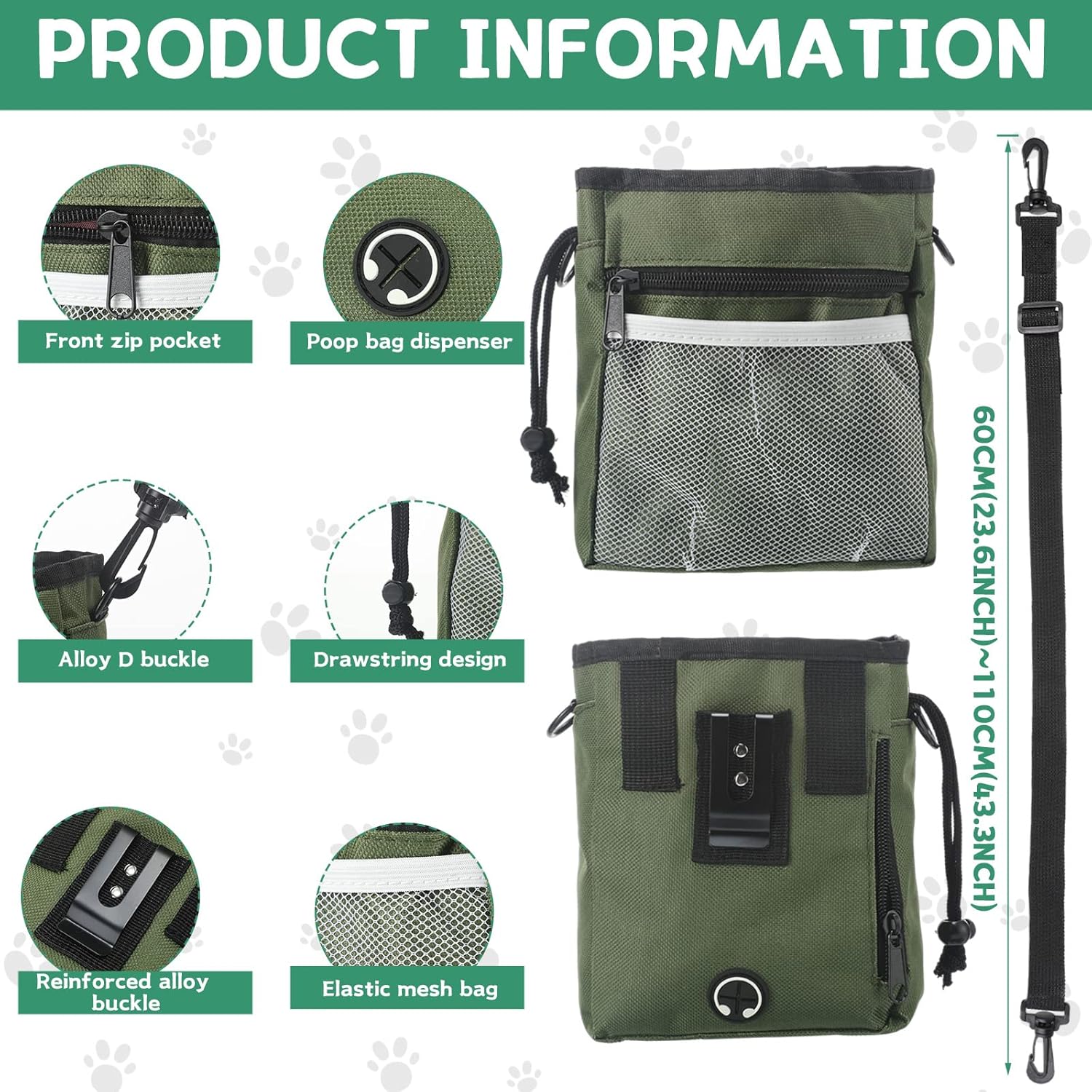 - Reliable to Store: the dog walking fanny pack is made of quality 600D oxford cloth and net cloth, credible and safe, not easy to fade, break or leak; With drawstring closure design, the bag can keep your pet treats safe, without worrying about leaking