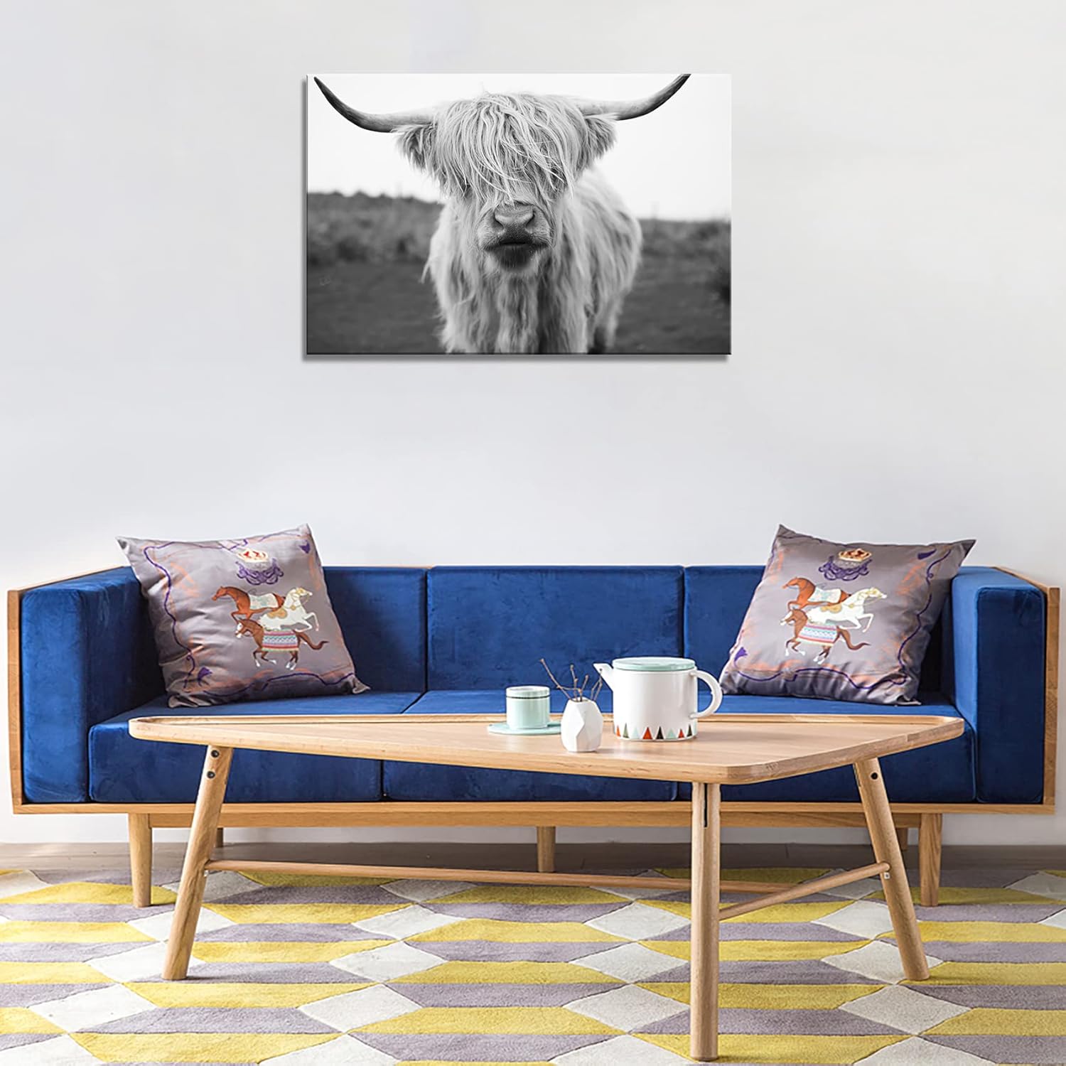 XXMWallArt FC3681 Highland Cow Canvas Art - Black and White Animal Wall Art for Living Room, Bedroom, Office Wall Decor