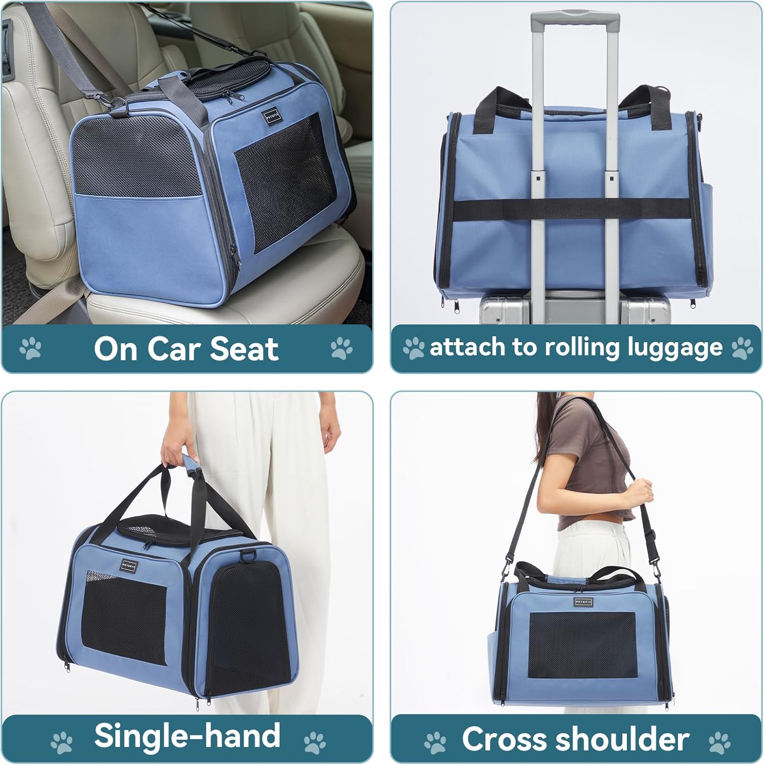 PETSFIT Dog Carrier for Small Dogs, Small Dogs Carrier Bag, Soft-Sided Pet Carrier with a Safety Leash for Pets Up to 25 Lbs (Large, Blue)