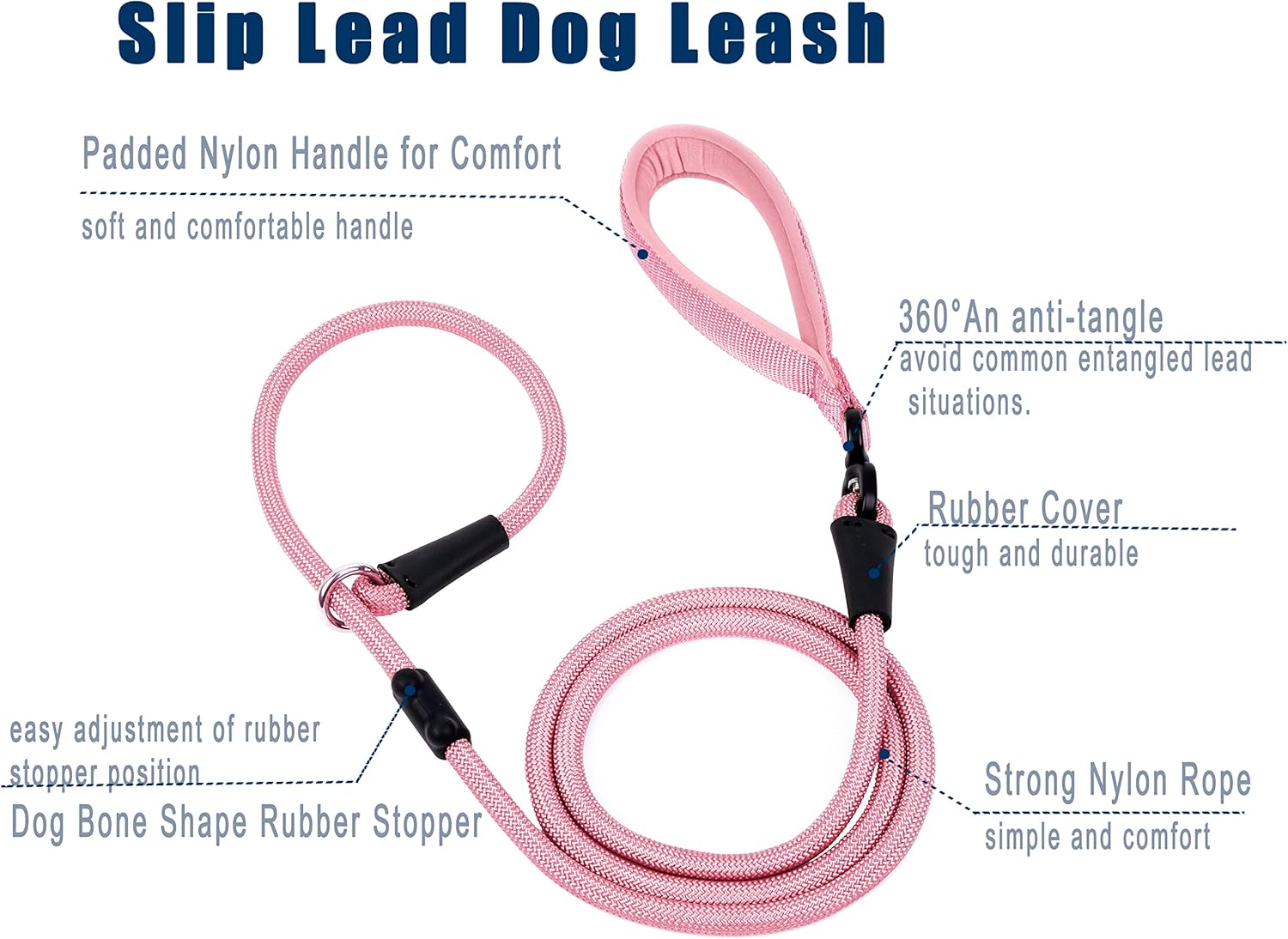 - 2 in 1 Dog Leash : 1/2" x 6 feet, Our dog slip lead is a leash and collar in one convenient design, you can adjust slipknot to fit any neck size,It’s very simple and easy to use.