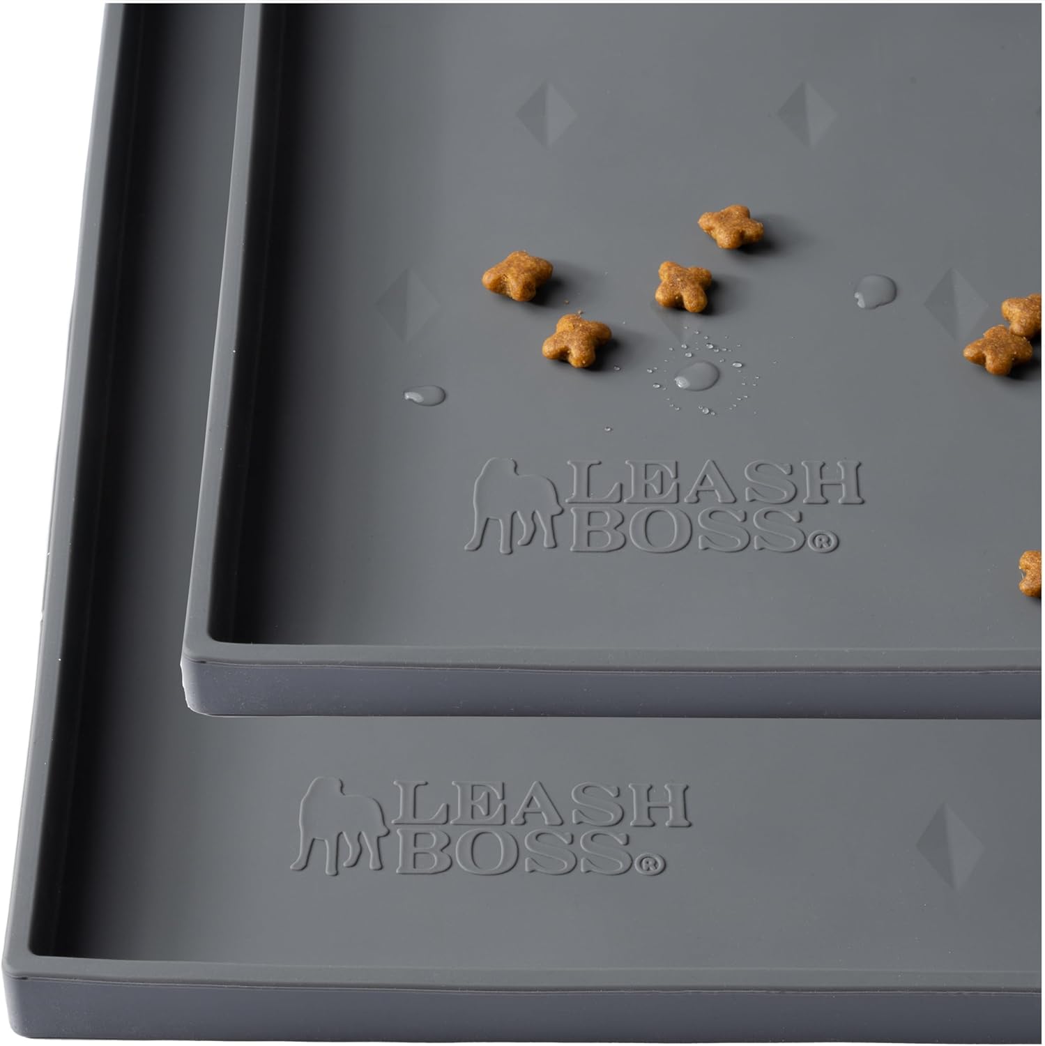 Leash Boss 2 Pack Dog Food Mats for Food and Water Bowls, Thick Waterproof Silicone Pet Feeding Mat for Floors, Extra Tall Raised Edges, Cat and Dog Placemat for Floors, Dishwasher Safe