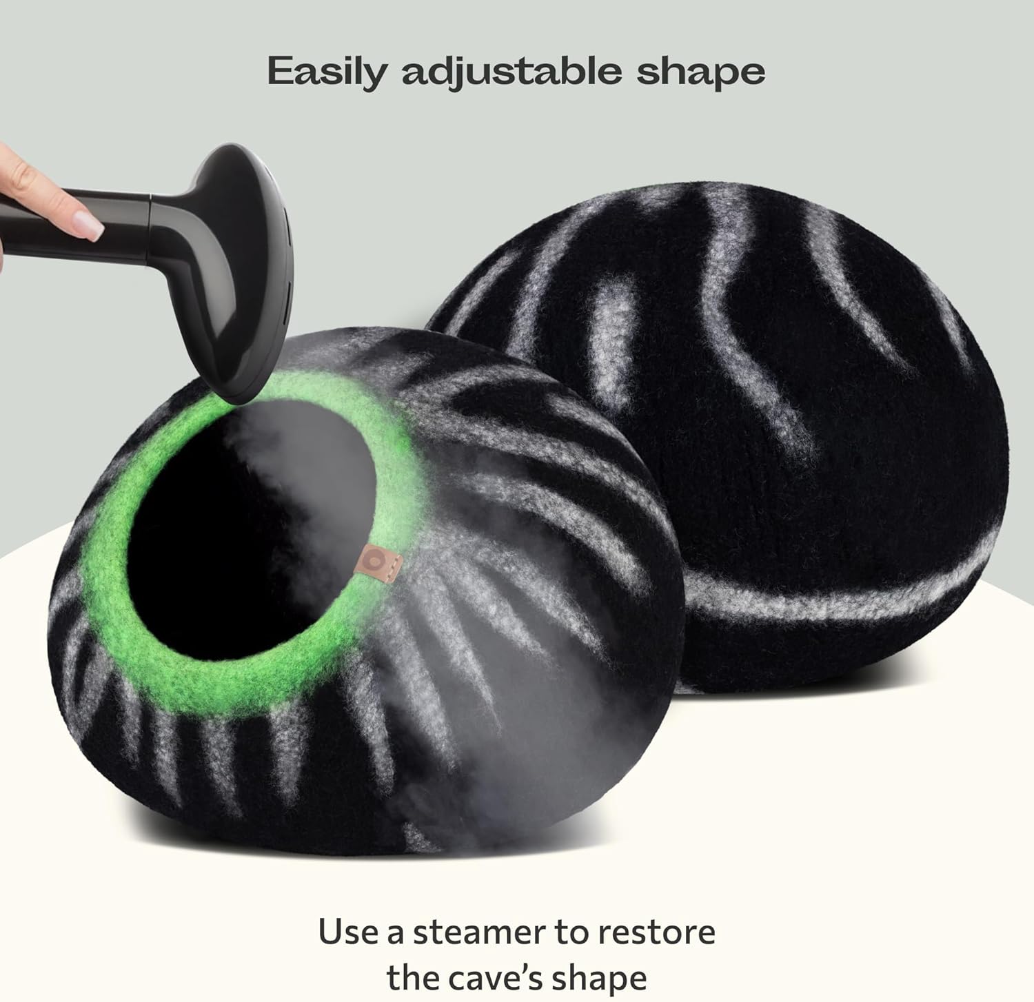 - DUAL USE: Our felted wool cat cave provides a private personal space for your cat to hide, sleep and rest inside. But it also can be used as a cat bed to lay, relax and play on the top. Meowfia cat bed cave helps keep your kitty warm in the winter, and cool in the summer.