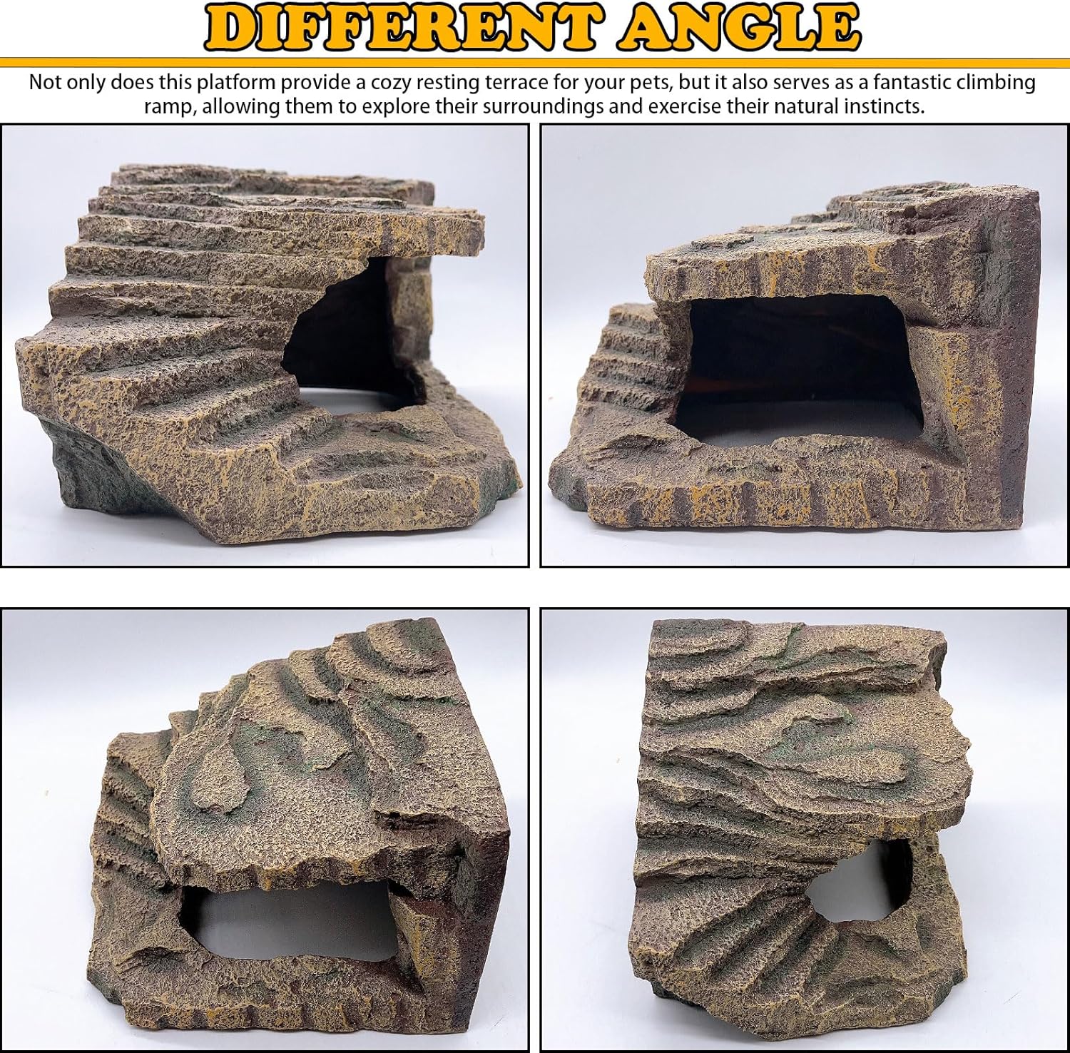 - 【PLAY AND REST】Your reptiles get a natural opportunity to hide or play, satisfying a healthy desire for coolness, privacy and protection; Provides and elevated platform for your pet to bask and warm up.