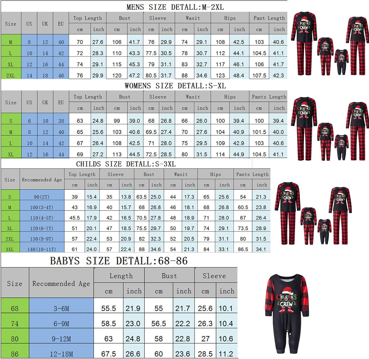 • [Sizes for Everyone] - Our Family Matching Christmas Pajamas Christmas pajama sets span a variety of sizes to fit everyone - women, men, boys, girls, pets, adults, children, toddlers, and even babies