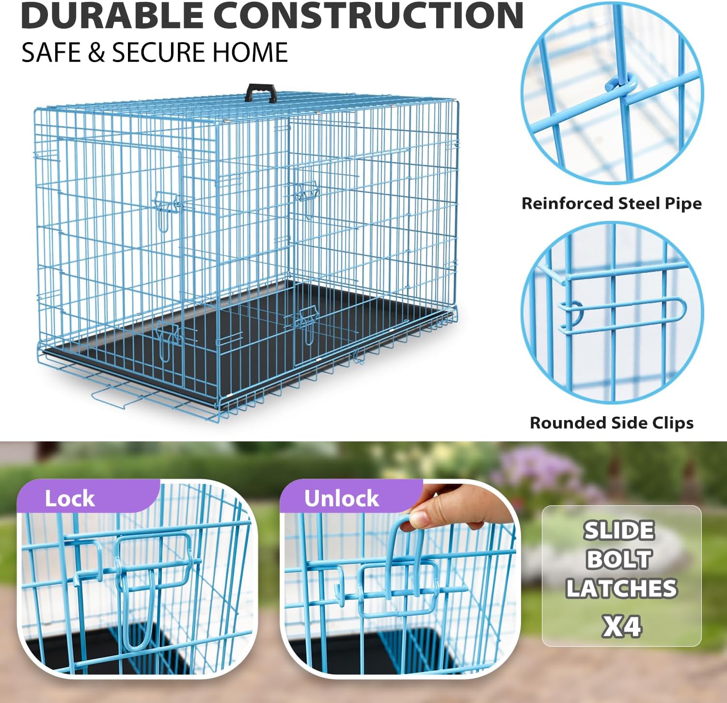 BestPet | Dog Crate | 30" | Blue | Foldable Metal Kennel with Double Doors, Secure Slide-Bolt Latches, Leakproof Tray | Portable Dog Cage for Small Breeds | for Travel, Indoor & Outdoor Use