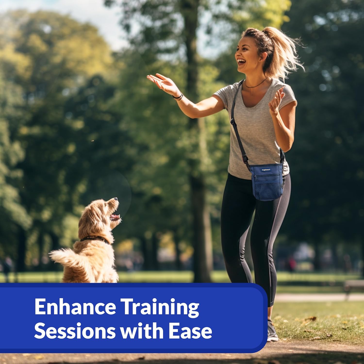 Dog Treat Pouch, Durable Oxford Polyester, No-Spill Magnetic Closure, Treat Pouches for Pet Training with Metal Clip, Waist Belt, Adjustable Strap, Poop Bag Dispenser (Navy Blue)