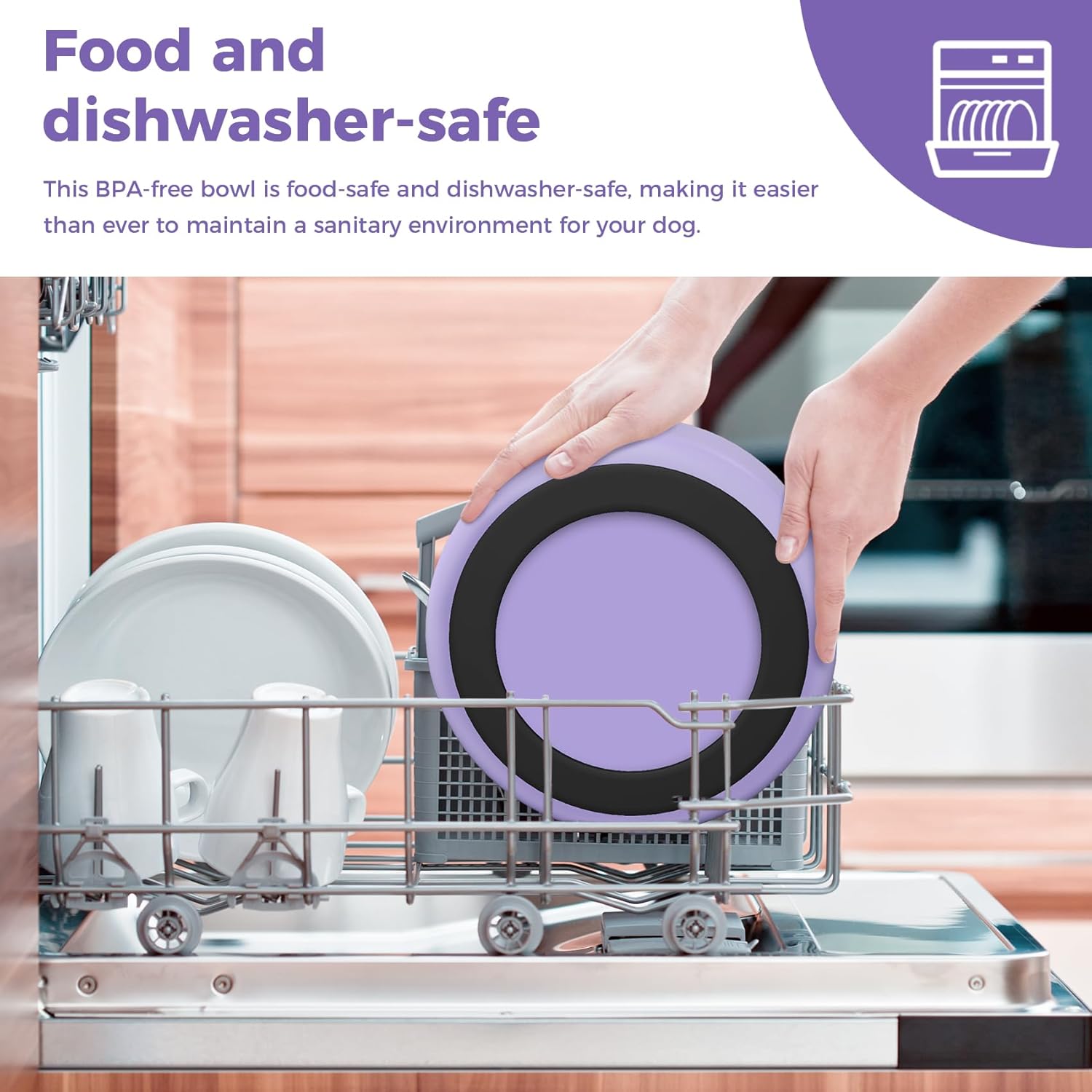 Dog Bowl, Stainless Steel Dog Food and Water Bowl with Non Slip Quiet Bottom, Easy to Clean, Dishwasher Safe, 64oz, Light Purple