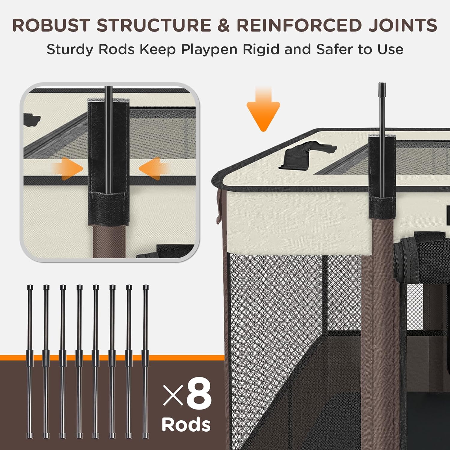 - Safety & Durability: Kitten playpen is made of high-quality 600D Oxford cloth, which is wear-resistant, soft to the touch, and odorless. We have reinforced the joints and corners of the dog playpen to ensure the safety of your pet. (The portable pet playpen is lightweight, and you can place heavy objects inside the pet playpen to increase stability, but it is not suitable for use with aggressive pets)