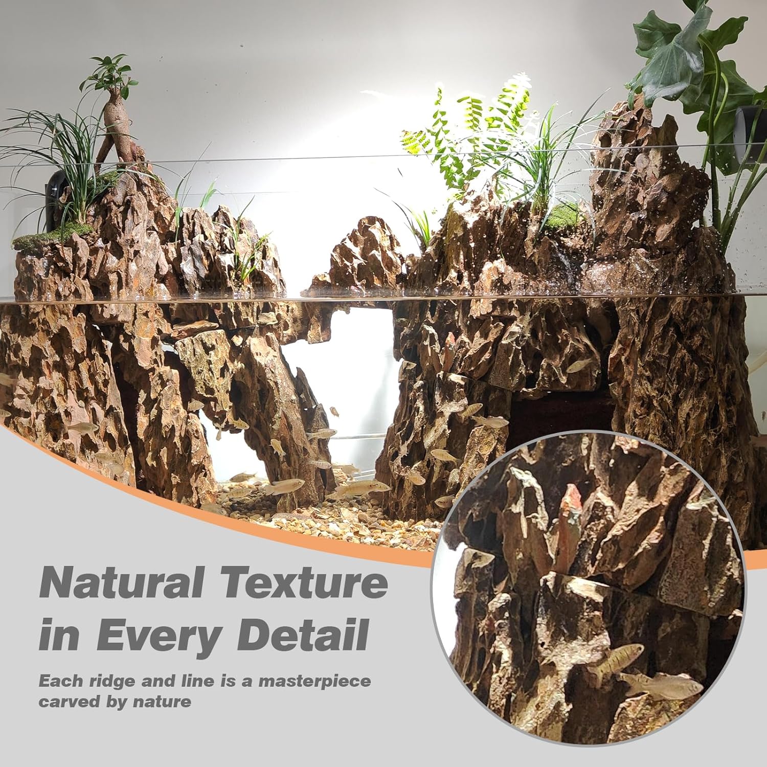 - ⛰ Versatile Aquascaping:Perfect for small planted tanks, large aquascaping rocks, or aquascaping displays, transforming aquariums, terrariums, shrimp tanks, turtle tanks, and reptile habitats.