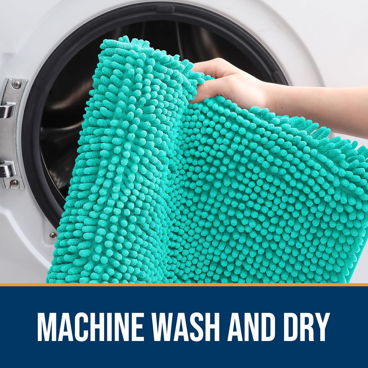 OLANLY Dog Door Mat for Muddy Paws 59x24, Absorbs Moisture and Dirt, Absorbent Non-Slip Washable Doormat, Quick Dry Chenille Mud Mat for Dogs, Entry Indoor Entryway Carpet for Inside Floor, Teal