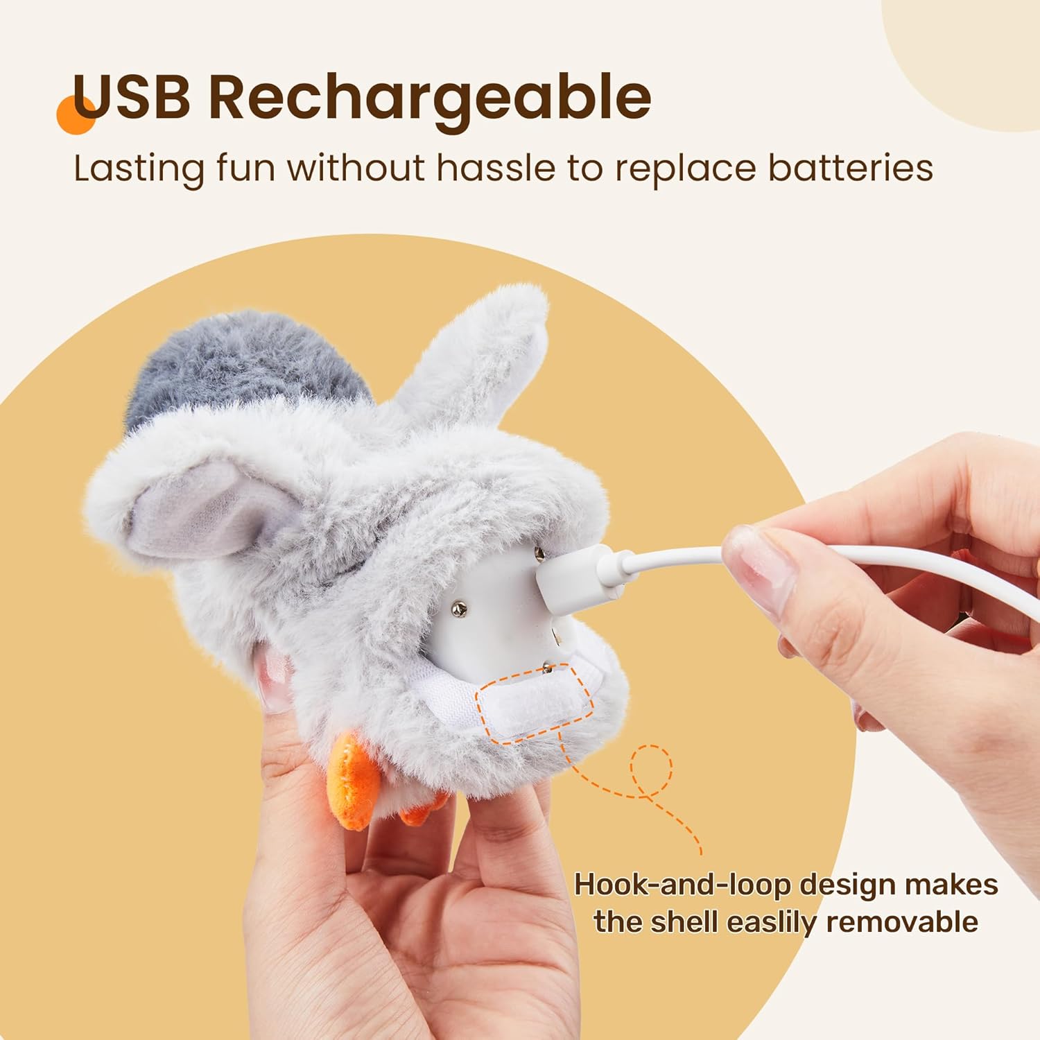 - USB Chargeable: this toy is USB chargeable which saves you from the hassle and costs to replace batteries. USB cable is included in the package. The included chargeable mechanism is detachable for convenient cleaning of the plush pet toy. The emperor penguin will stay dormant and quiet to save battery power when left alone