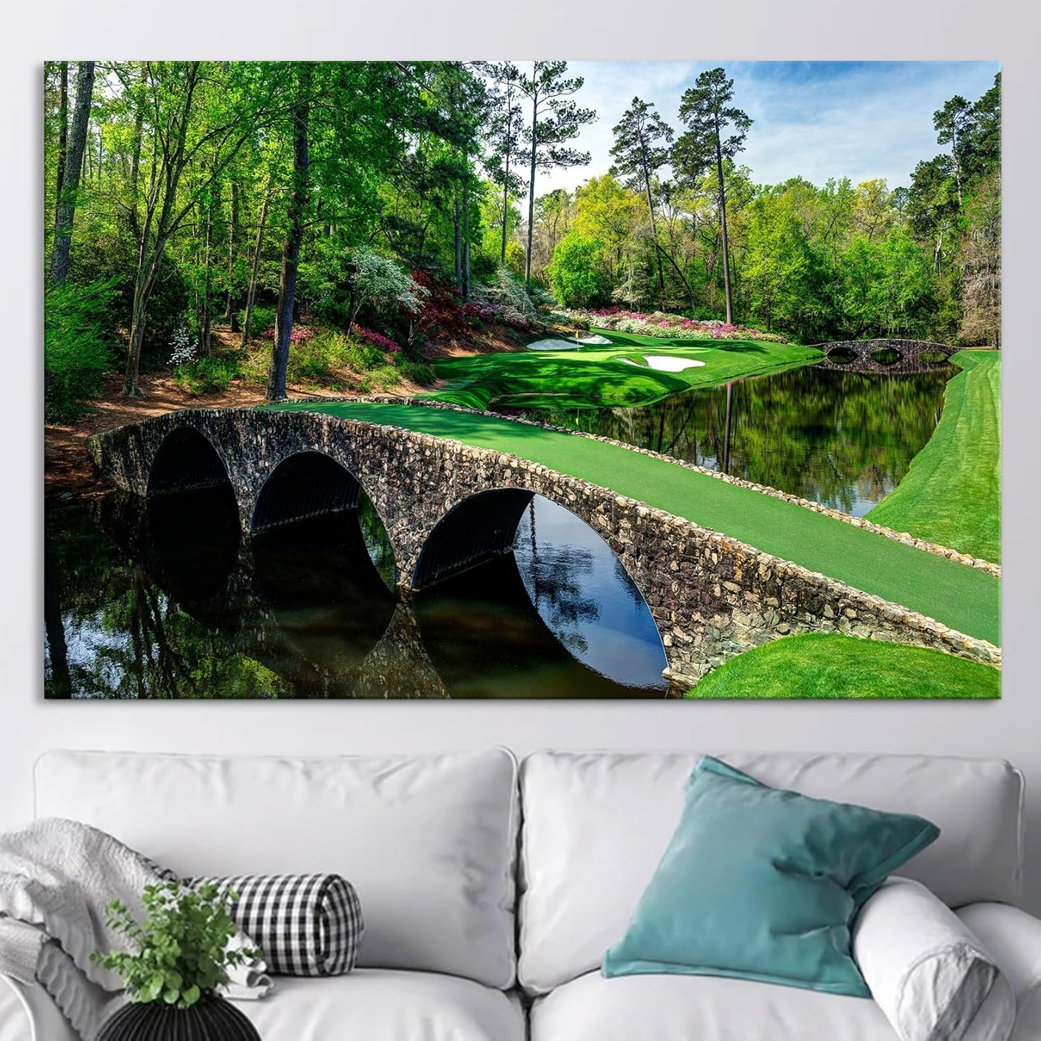 Nature Wall Art Prints - Ocean Forest Mountain Lake Canvas Landscapes - Small to Extra Large Living Room Bedroom Kitchen Bathroom Décor (Golf Course with Stone Bridge, 31L" x 47W")