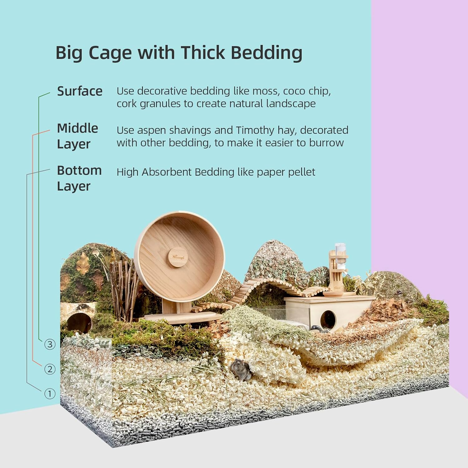 - [Perfect Gift for Many Pets] The small pet aspen bedding is suitable for Syrian, dwarf hamsters, chinchilla, rabbit, bird, gerbils, guinea pig, Mice, Lemming, Degus or other small-sized pets that love to live in a wonderful hideout without annoying smells. It is also a lovely gift for you to build your own splendid hamster palace.