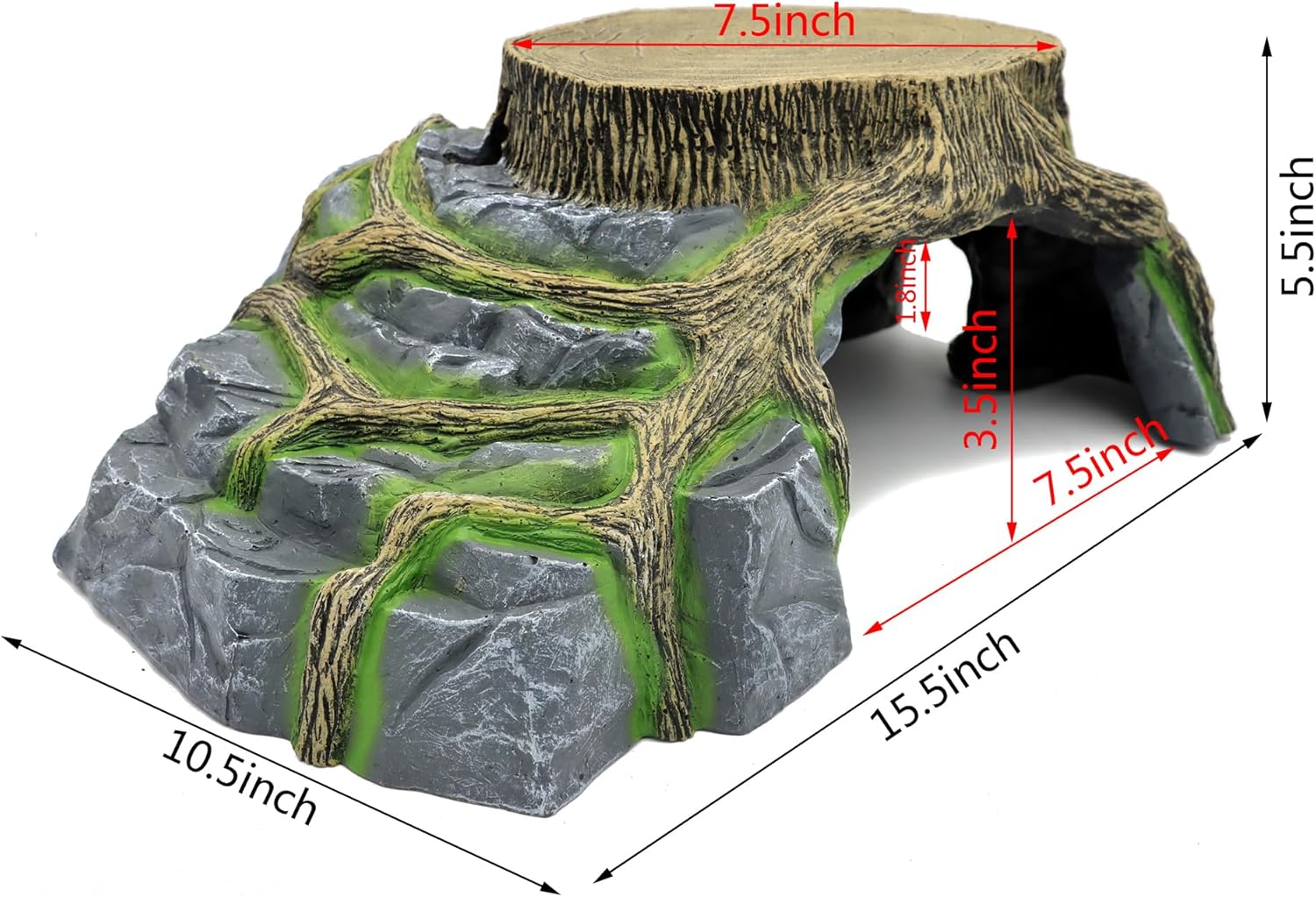 JIHAQUA Extra X Large Resin Reptile Tank Hideouts Cave Habitat Decor for Leopard Gecko Tank Accessories