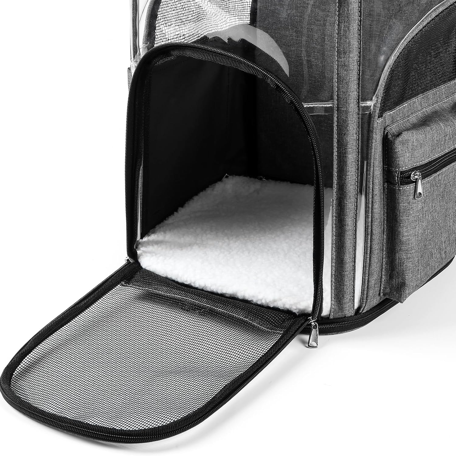 - 2. 【TRANSPARENT EXCELLENT VISIBILITY 】A transparent pet carrier bag that offers a clear view of your cat, allowing both pet and owner to enjoy optimal visibility. Its breathable design ensures maximum comfort and airflow, featuring a ventilation system that keeps your cat cool and comfortable during travel.