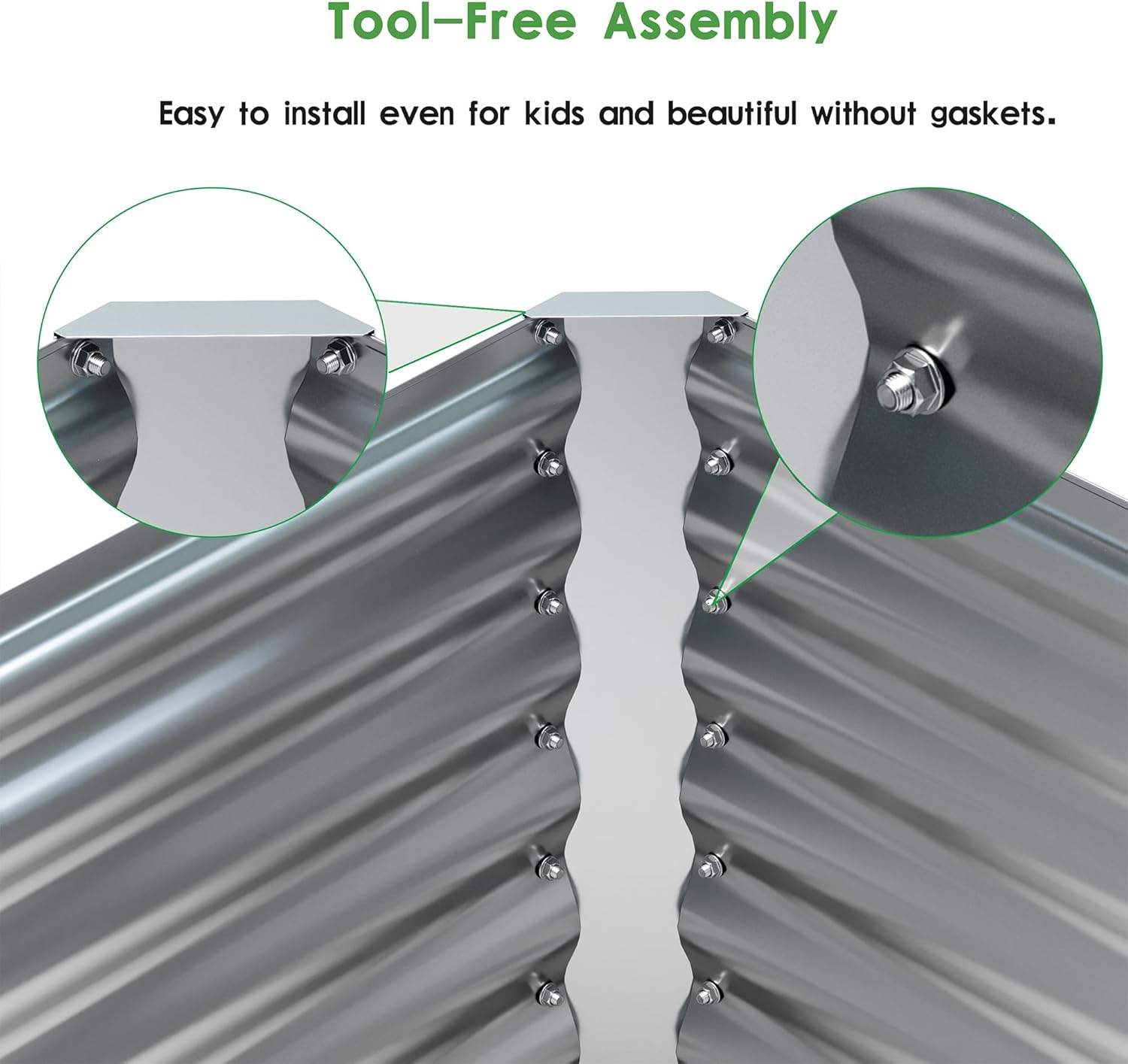 EKX 4x2x2FT Galvanized Raised Garden Bed, Raised Garden Bed Kit-Metal Planter Box Outdoor,Planting for Vegetables, Fruits,Herbs, Flowers-Slive