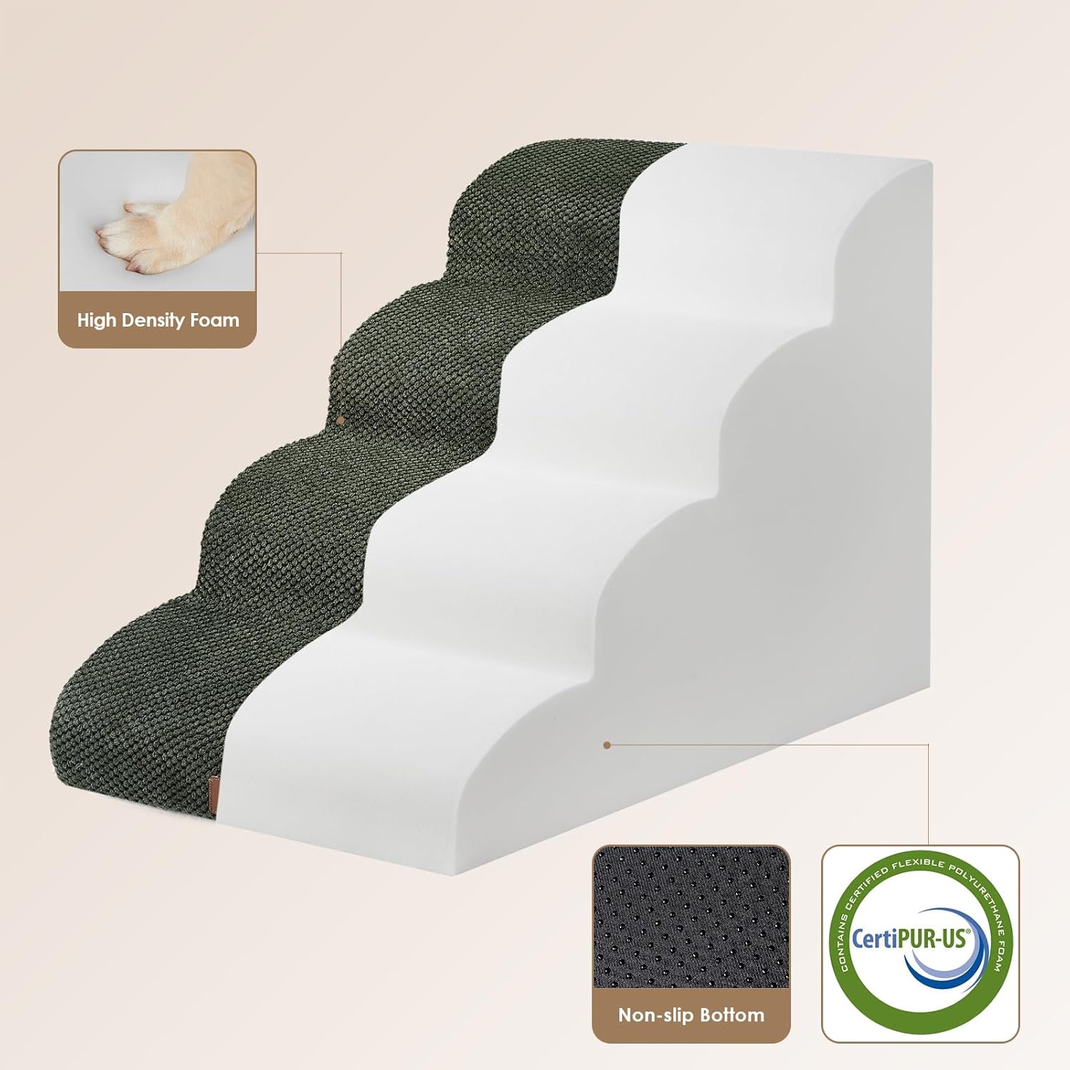 EHEYCIGA Curved Dog Stairs Ramp for High Beds 19.7" H, 4-Step Dog Steps for Small Dogs and Cats, Pet Stairs for High Bed Climbing, Non-Slip Balanced Pet Step Indoor, Olive Green