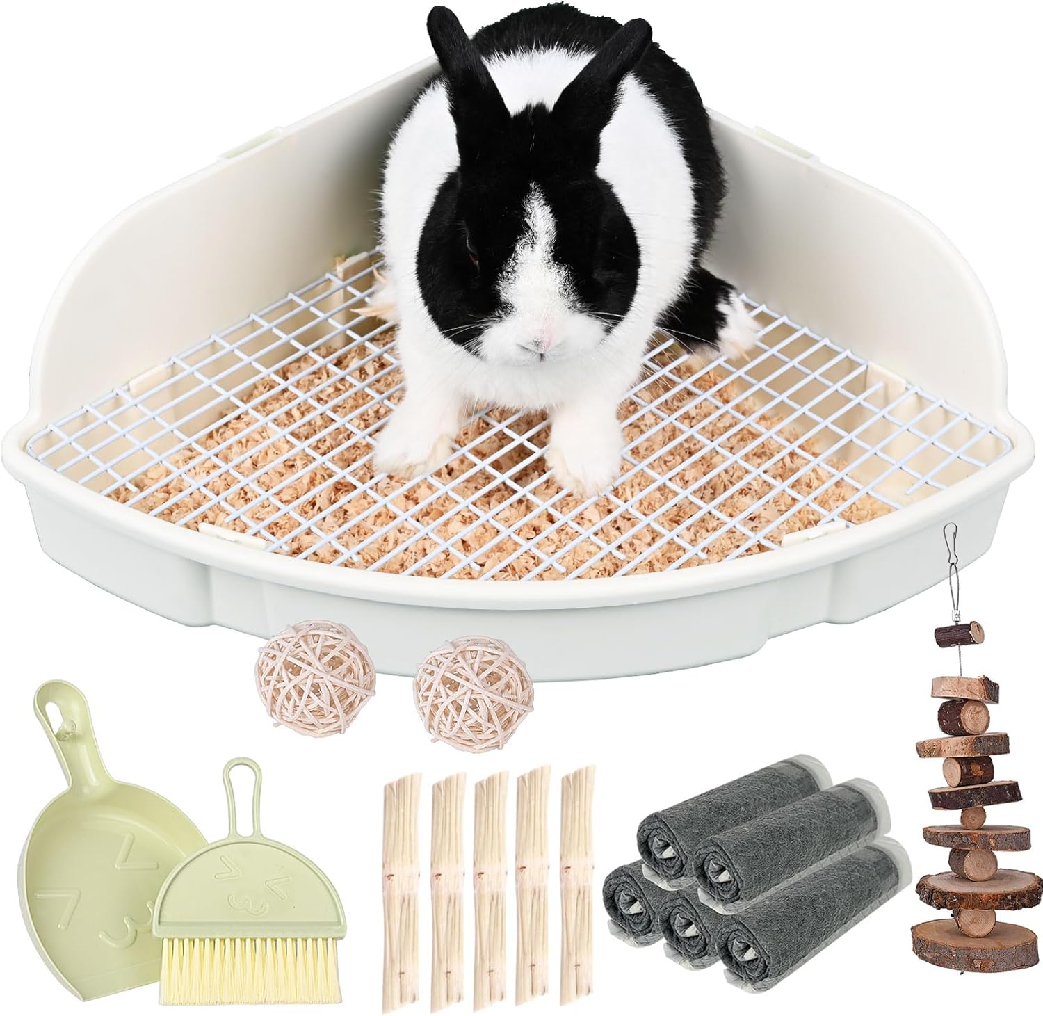 - 【Solid and Durable】 The corner litter box is made of high quality plastic and stainless steel grid, solid and durable enough to handle some chewing. The reinforced bottom design to withstand adult small animals of relatively large.