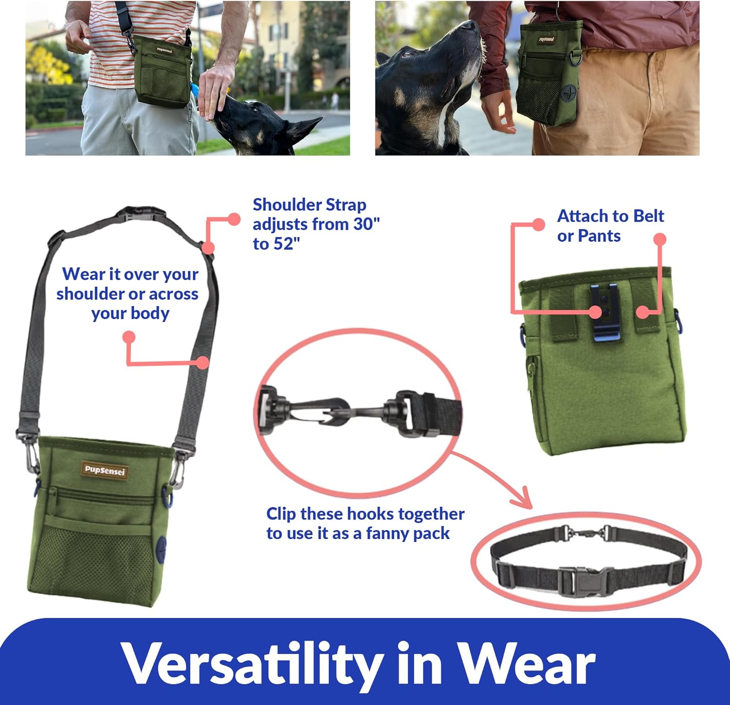 - Superior Quality Material: PupSensei dog treat bag is made of high-quality oxford polyester, ensuring durability and longevity. It is designed to withstand your pet's playful nature and your active lifestyle.