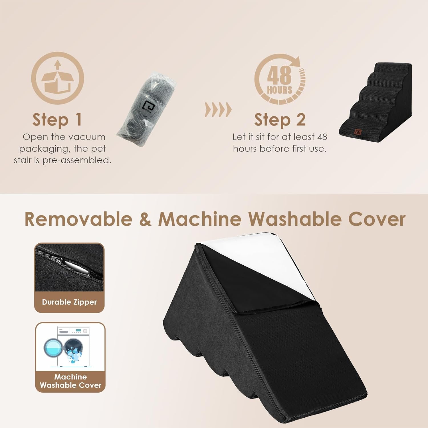 - COMFORTABLE PET STAIRS - This foam dog stair is designed directly against the edge of a bed, sofa or other furniture, so your pet can climb up and down comfortably.