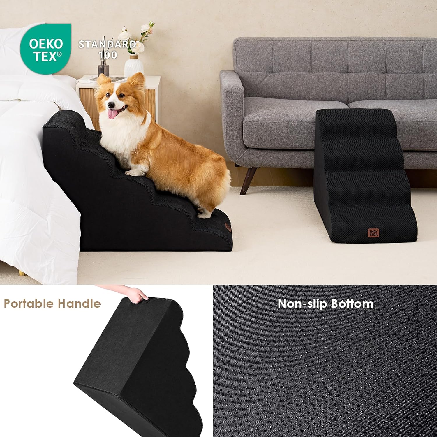 EHEYCIGA Curved Dog Stairs Ramp for High Beds 22.6" H, 5-Step Dog Steps for Small Dogs and Cats, Pet Stairs for High Bed Climbing, Non-Slip Balanced Pet Step Indoor, Black