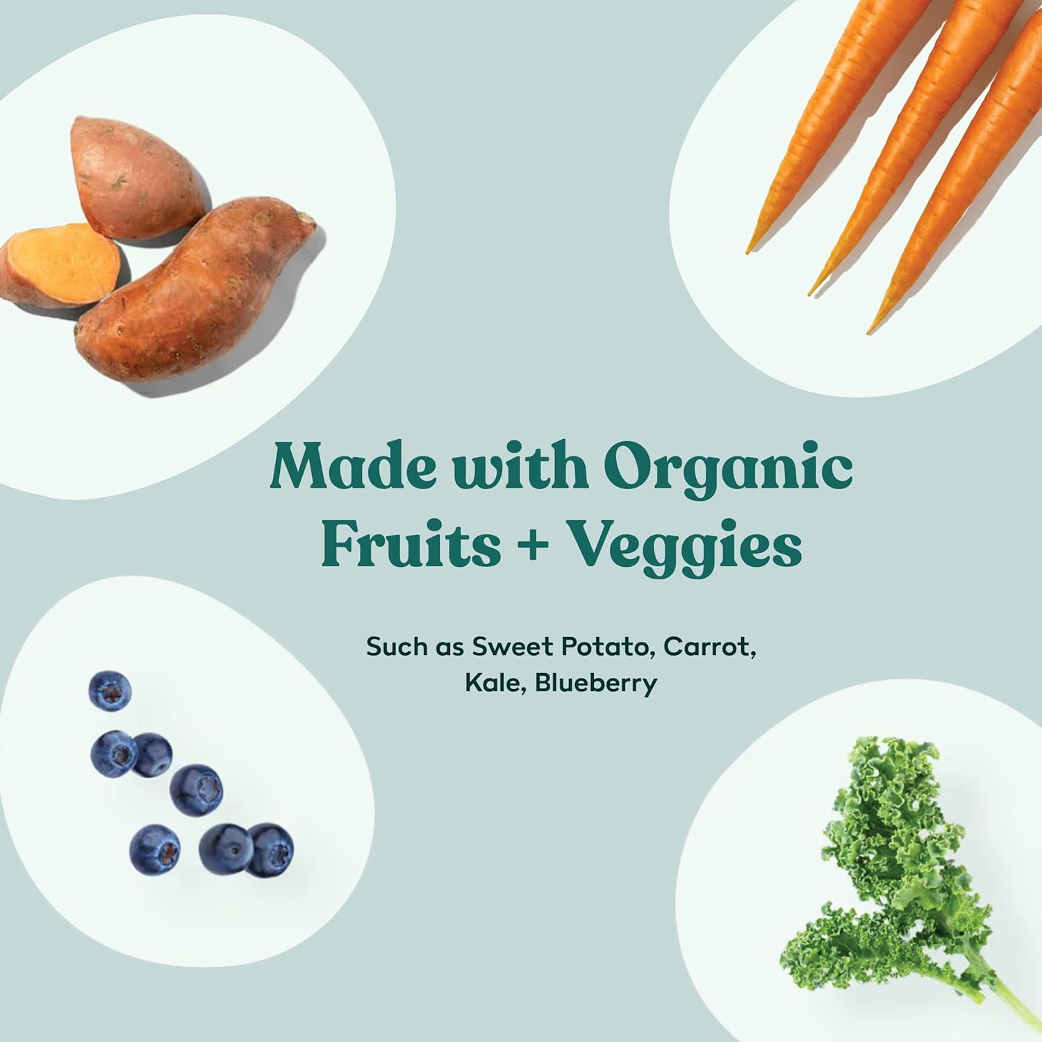 - 🥦 ORGANIC FRUITS & VEGGIES FOR FIBER: Packed with organic fruits and vegetables, like sweet potatoes, blueberries, and spinach, offering natural fiber, antioxidants, and digestive support. Helps maintain a healthy gut and immune system.