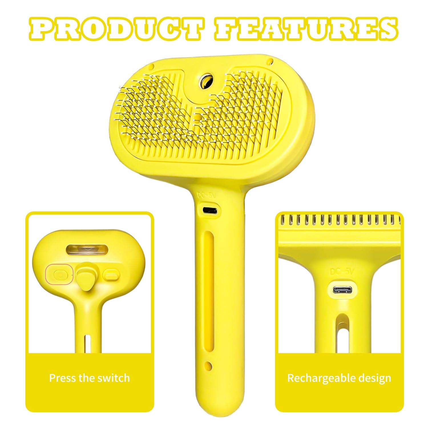 Cat Brush for Shedding - Pet Hair Removal Comb with Water Tank, Steam Brush, Cat Bath Brush, Dog Brush - Yellow
