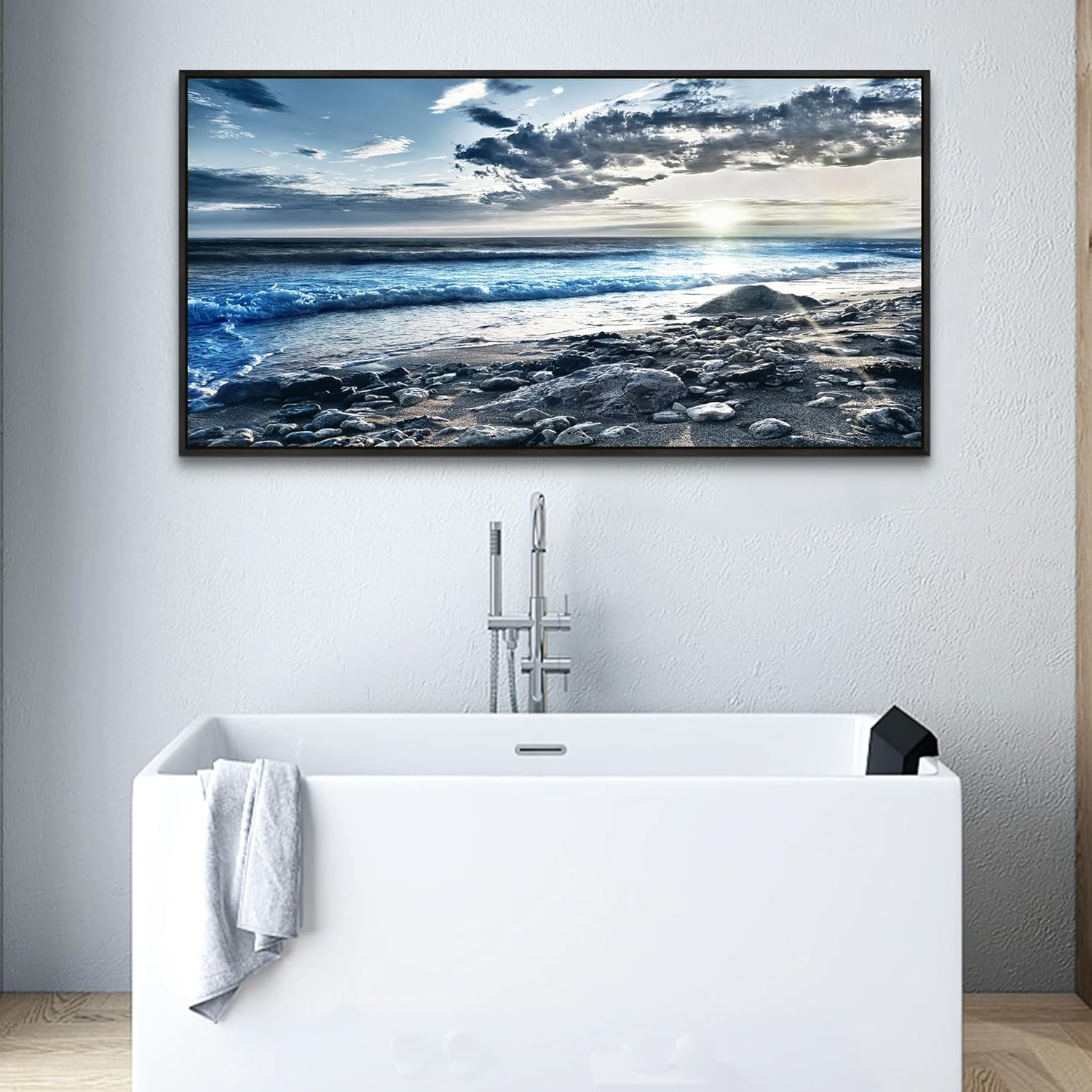 Wapluam Large Canvas Prints Wall Art For Living Room Wall Decorations For Bedroom Office Wall Decor Scenery Wall Painting Blue Sea Pictures Artwork For Fashion Black Framed Beach Posters Home Decor