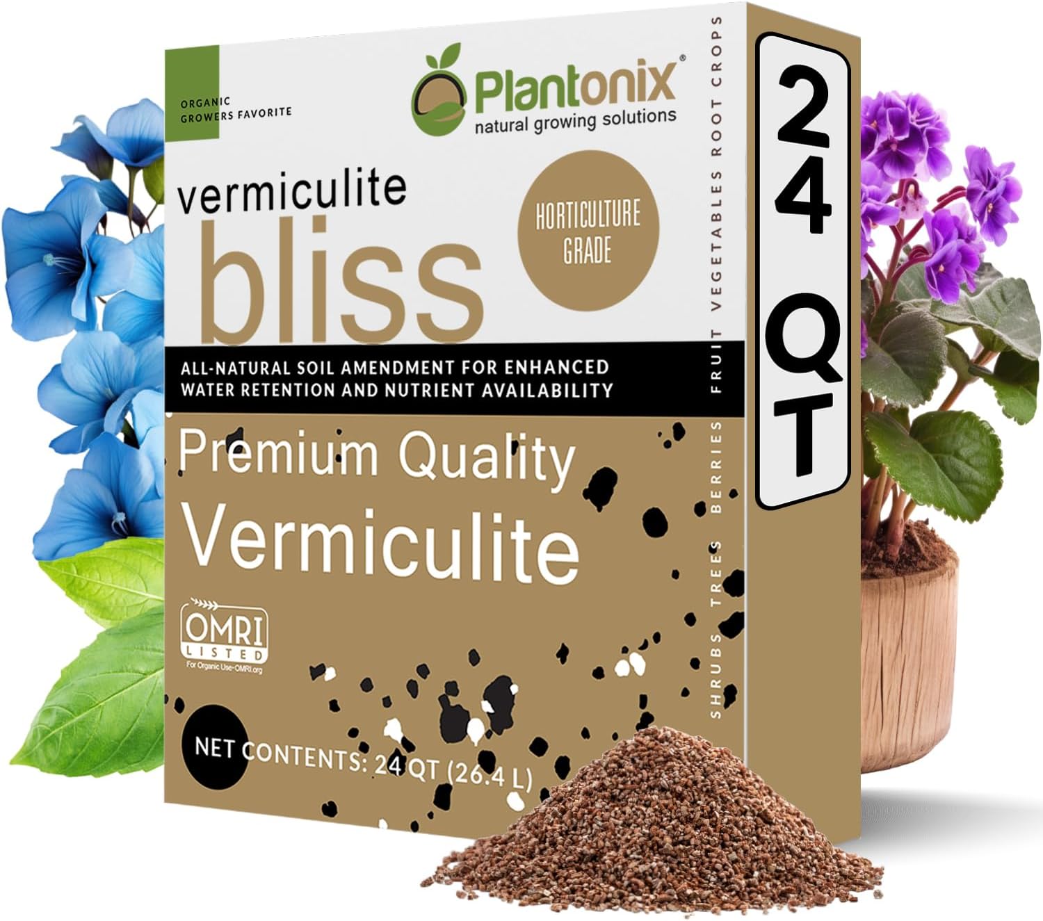 - 100% Natural Soil Amendment for Plants - Plantonix Vermiculite Bliss is a natural soil amendment that traps nutrients in the soil, before gradually releasing them into plant roots as needed. Over time, vermiculite drastically improves nutrient retention and availability, leading to higher nutrient uptake and optimizing soil conditions for increased plant vigor.