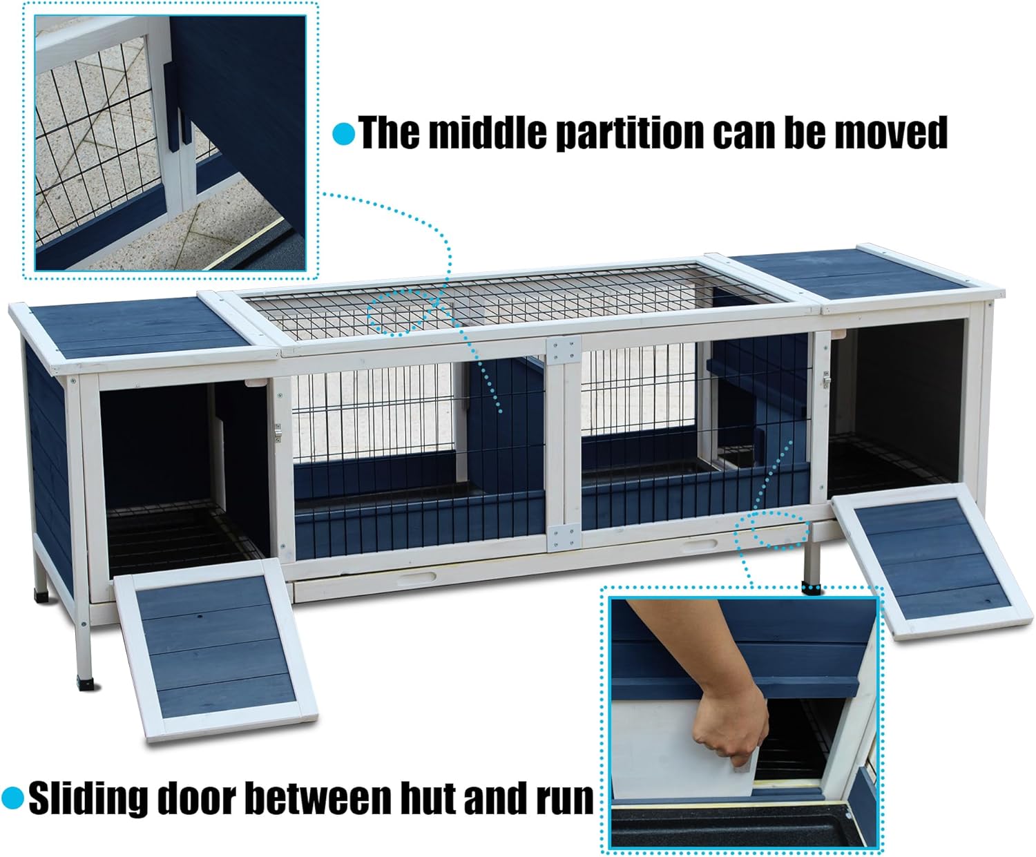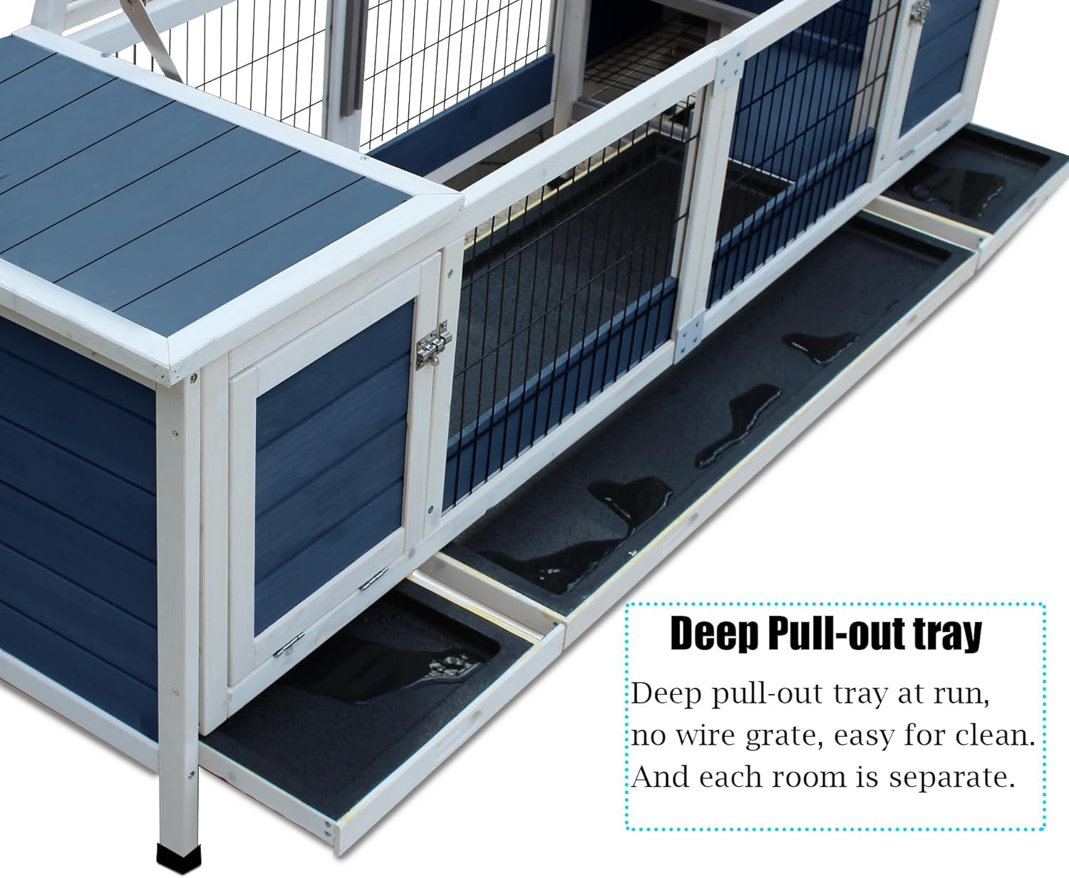 Rabbit Hutch Indoor Leakproof Bunny Cage Fir WoodenOutdoor Bunny House with Wire Floor Leakproof Plastic Tray (Blue)