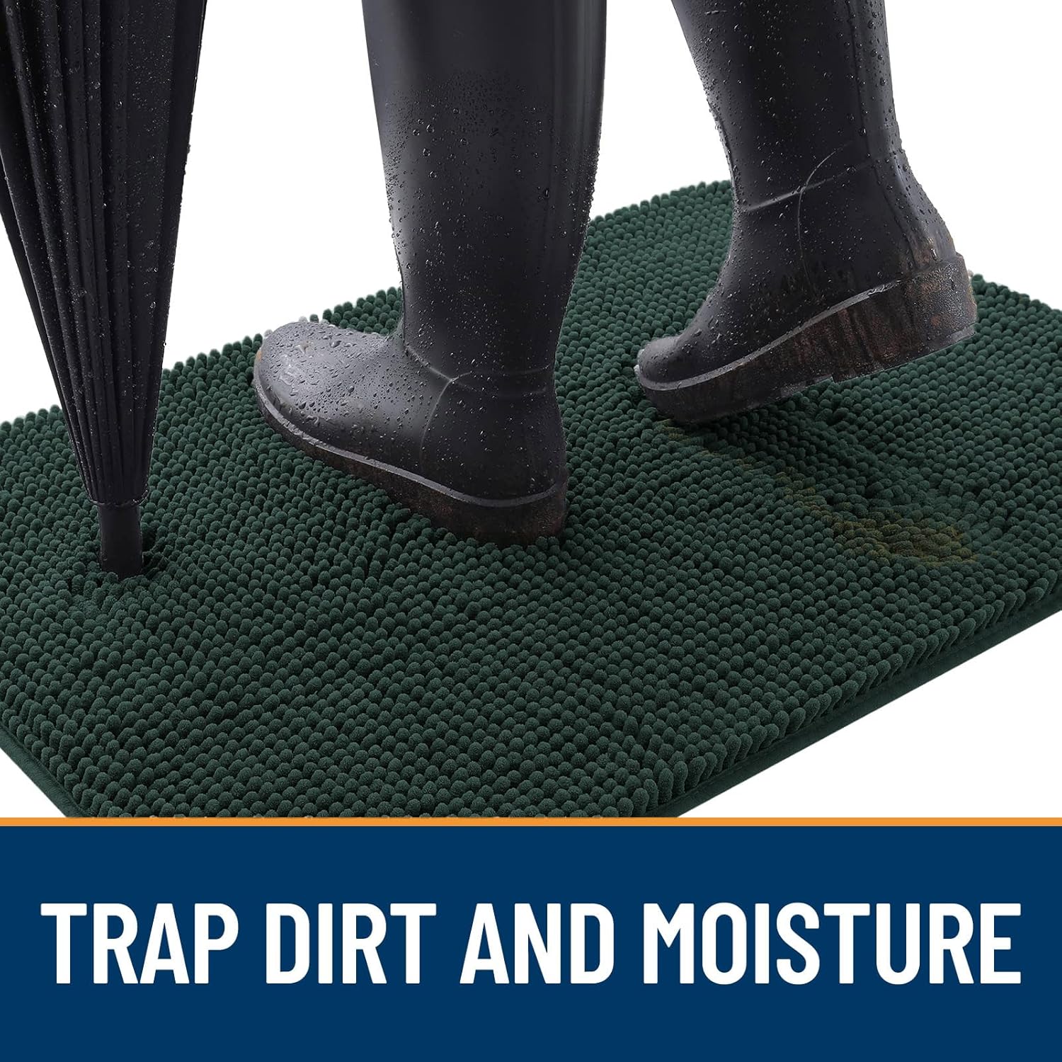 OLANLY Dog Door Mat for Muddy Paws 40x32, Absorbs Moisture and Dirt, Absorbent Non-Slip Washable Doormat, Quick Dry Chenille Mud Mat, Entry Indoor Entryway Carpet for Inside Floor, Blackish Green