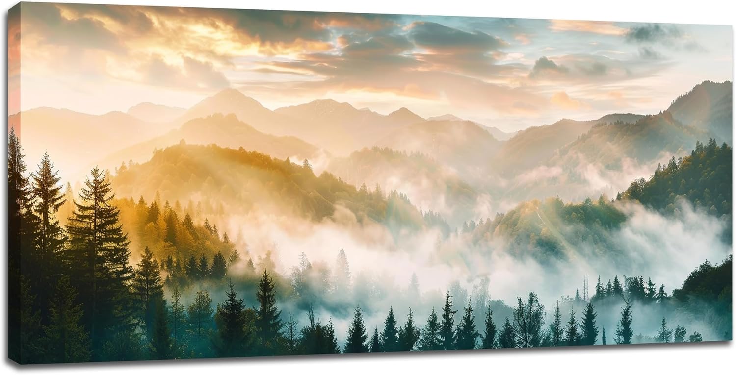 Large Mountain Wall Art for Living Room Forest Mountain Big Space Size Landscape Sea of Fog Scenery Landscape Framed Canvas Prints Pictures Painting Modern Artwork Office Home Decor 60"x30"