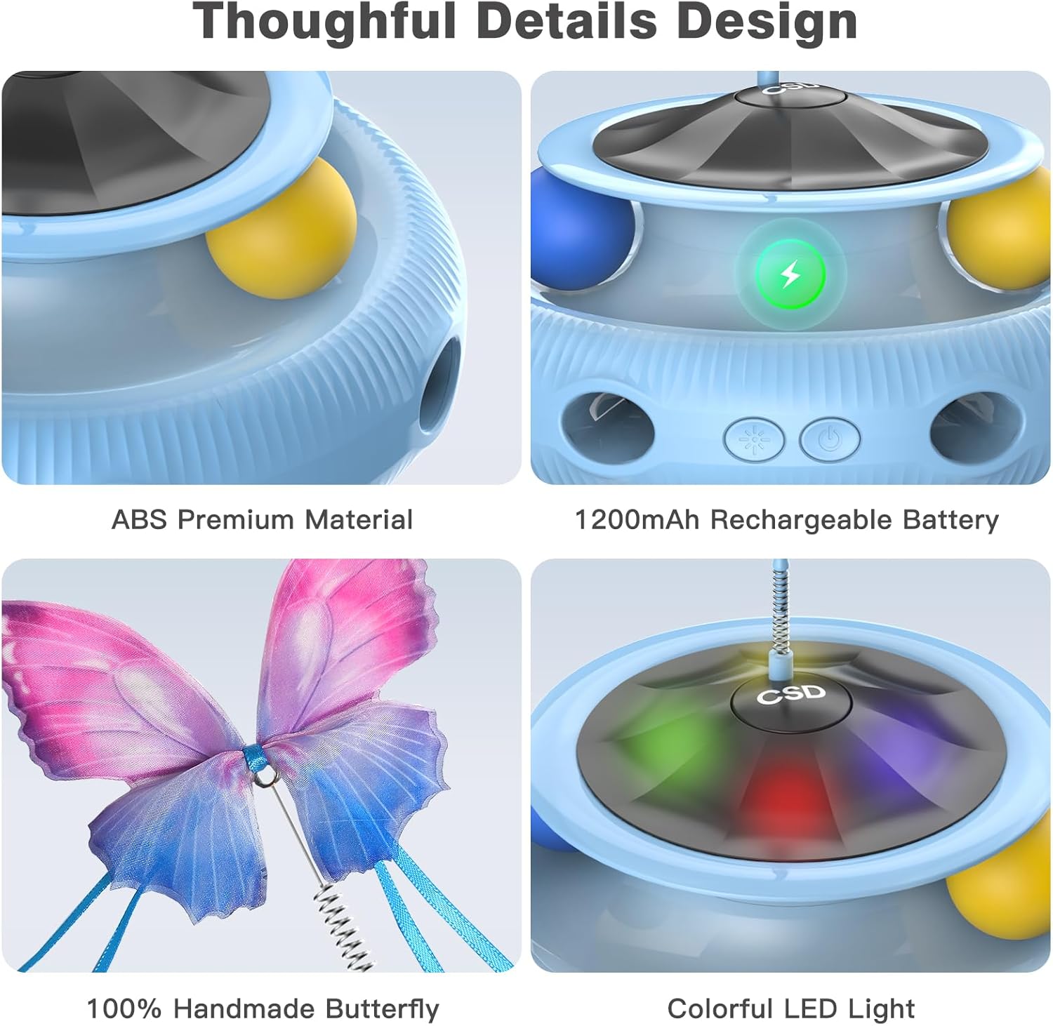 Automatic Interactive Cat Toys for Indoor Cats & Bored Adults - Kitten Toys with Fluttering Butterfly, Ambush Feather & Track Balls - Exercise & Stimulation for Playful Cats (Sky Blue)