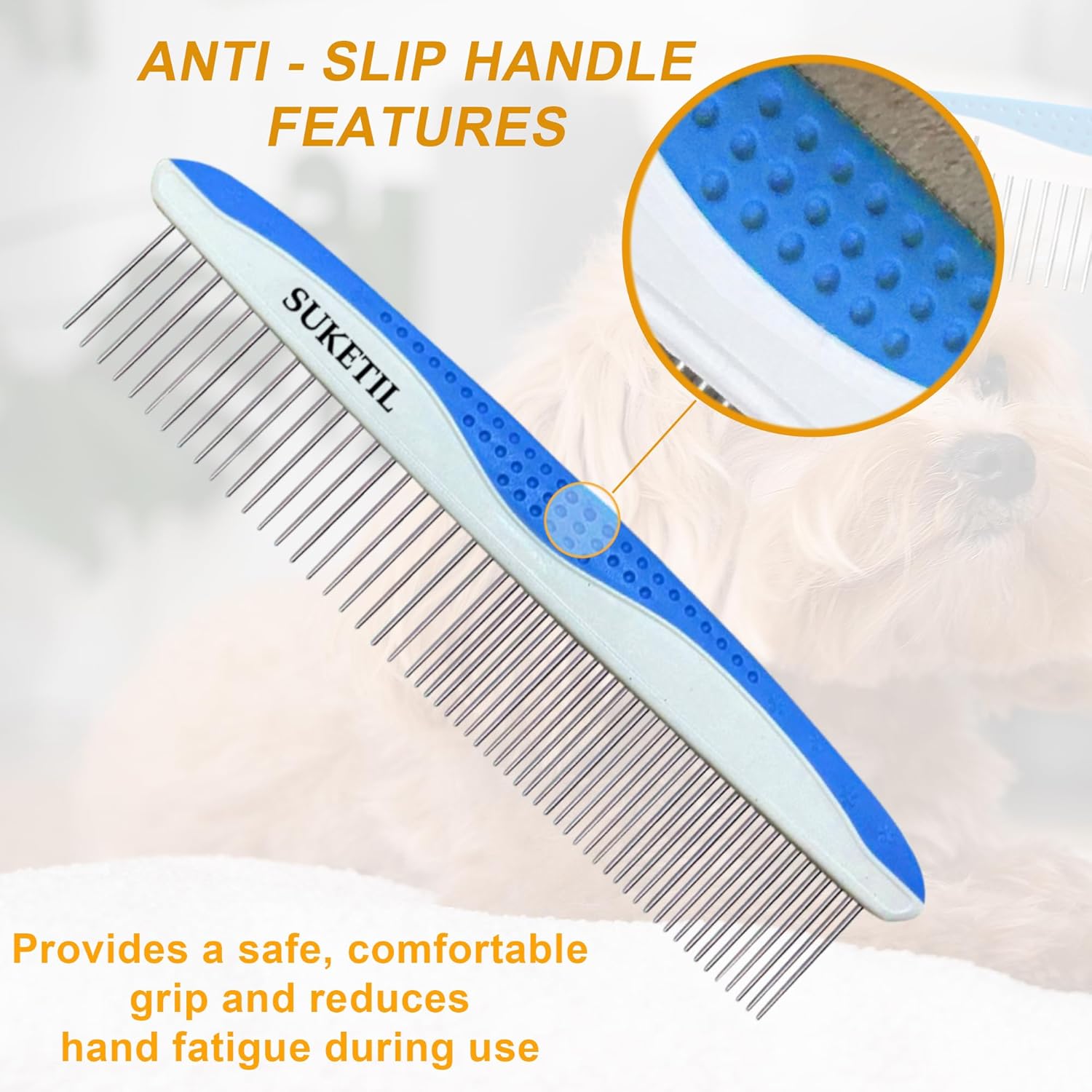 - ERGONOMIC NO-SLIP HANDLE: Designed with a non-slip handle, this comb provides a secure and comfortable grip, reducing hand fatigue during extended grooming sessions. It's an ideal choice for pet hair comb, making the process easier and more efficient