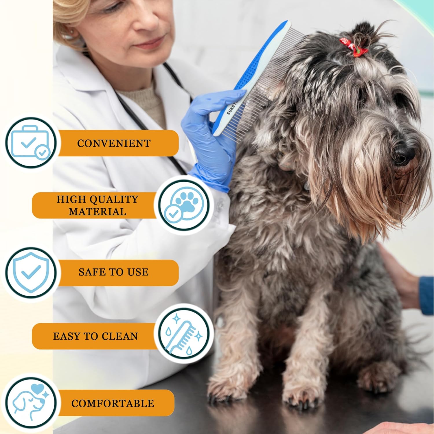- EFFECTIVE AND SAFE: The comb teeth are designed to effectively remove loose hair, dirt, and tangles without causing discomfort. It serves as both a shedding comb for dog hair comb and a matted fur remover for cats, ensuring safe and gentle grooming sessions for pets with sensitive skin.