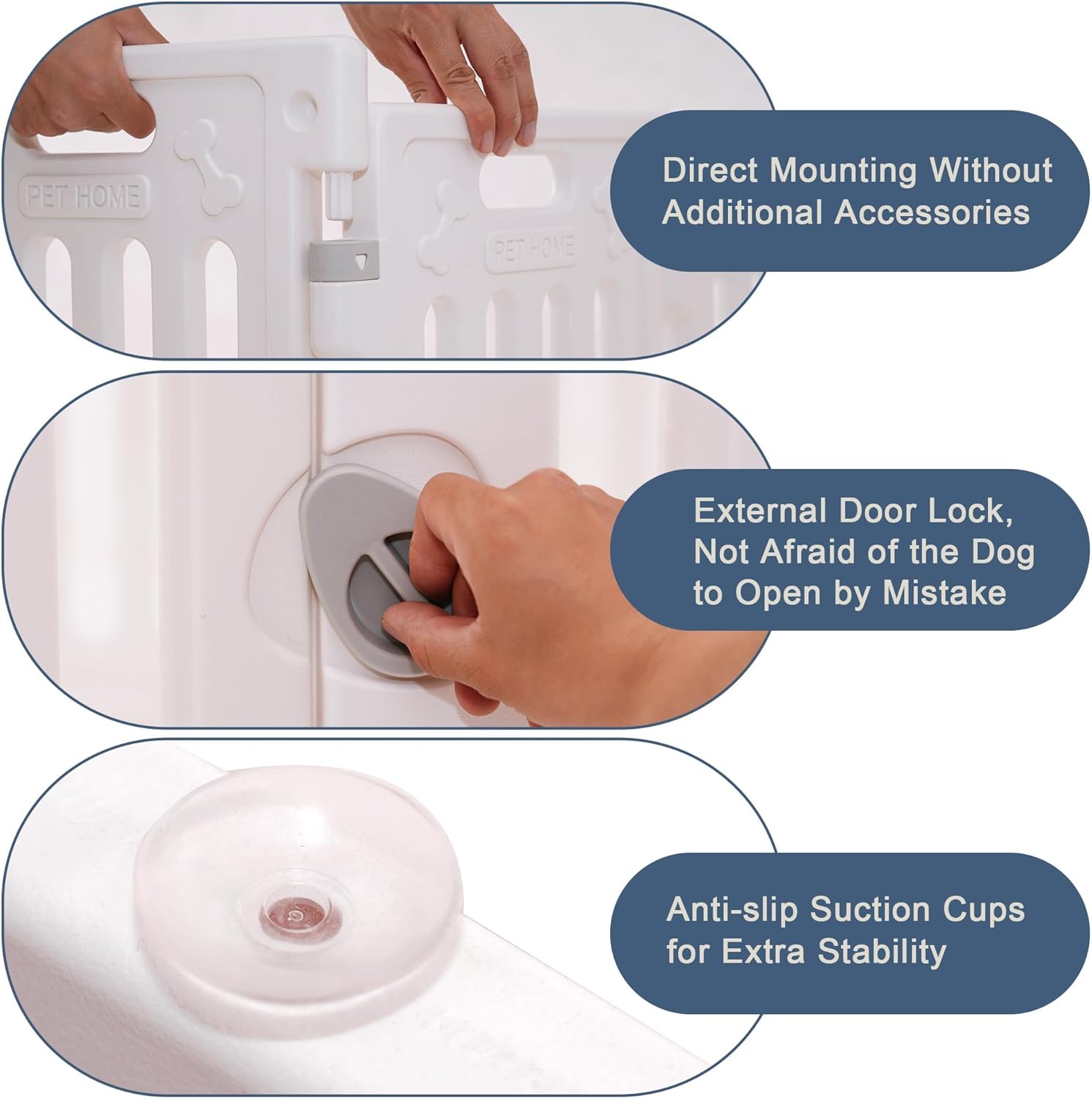 - NON-SLIP STABILITY: Our dog fence features non-slip suction cups that keep it securely in place on smooth surfaces. Your active pets can play safely without knocking down the playpen.