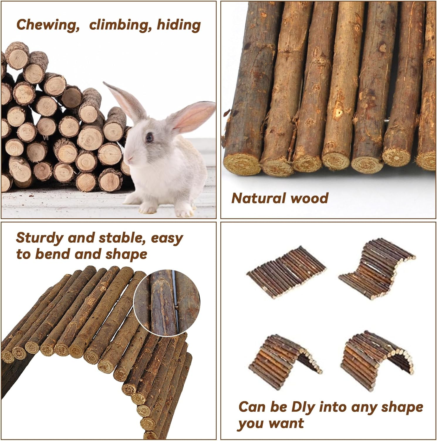 - 【Product Features】Large guinea pig wooden bridge internal metal wire can be freely bent,pliable and flexible,bunny wooden tunnels can be designed into tunnels,bridges,rabbit ladder or slopes and other shapes,wooden guinea pig tunnel can add more fun for pets.And guinea pig wooden tunnel is made of solid wood,very sturdy,durable and practical.