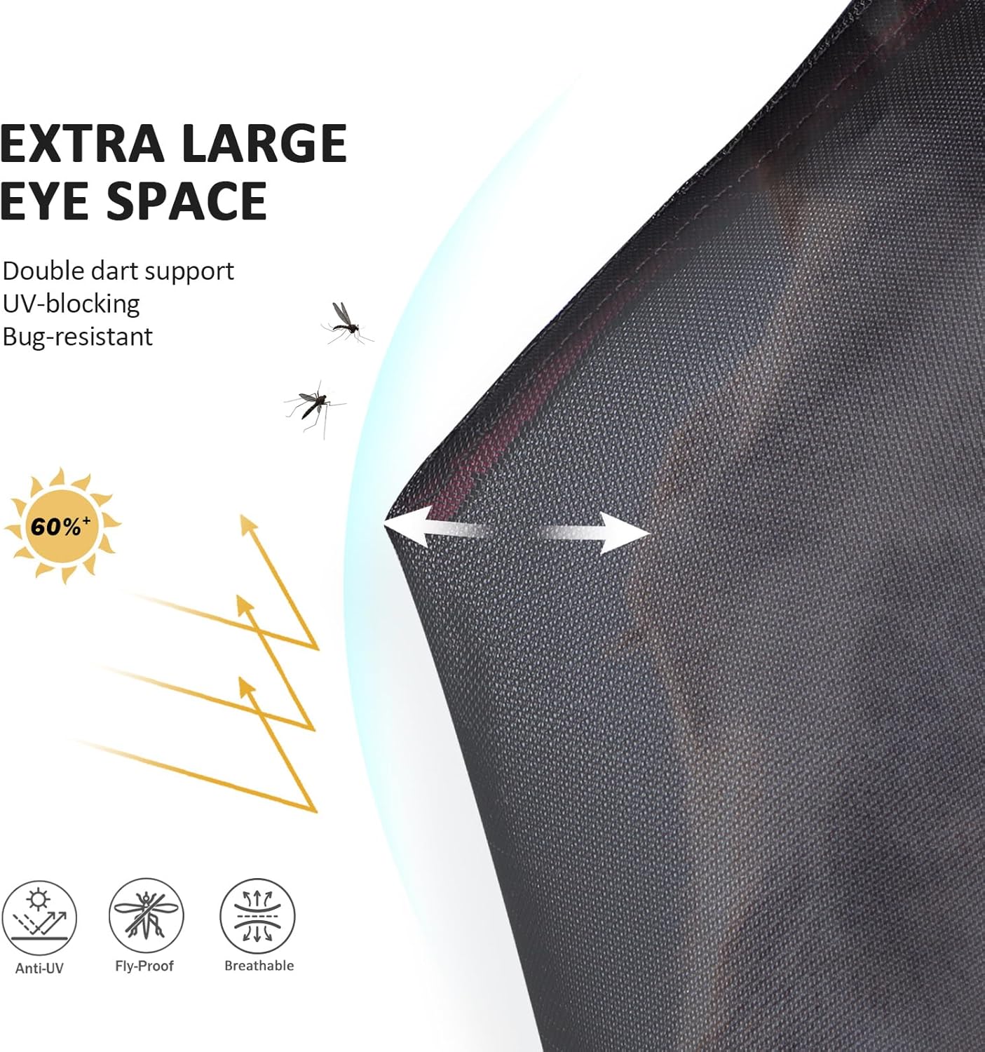 - Advanced Fine Mesh: The fly mask is crafted from an ultra-fine mesh that provides superior protection against insects, dust, and debris while ensuring clear visibility. This lightweight mesh is ideal for all-day wear, allowing your horse to see and interact comfortably.
