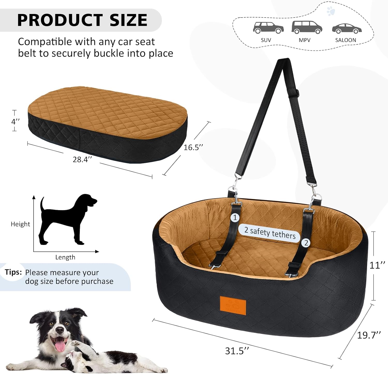 - Safety & Comfort: Dog seat is made with high-quality short plush fabric, providing warmth, comfort, and durability. Dog car seat medium dog interior is filled with high-density sponge for ultimate comfort during car rides. Dog travel bed non-slip bottom and sturdy safety belt or harness ensure your pet's safety and stability throughout the journey.