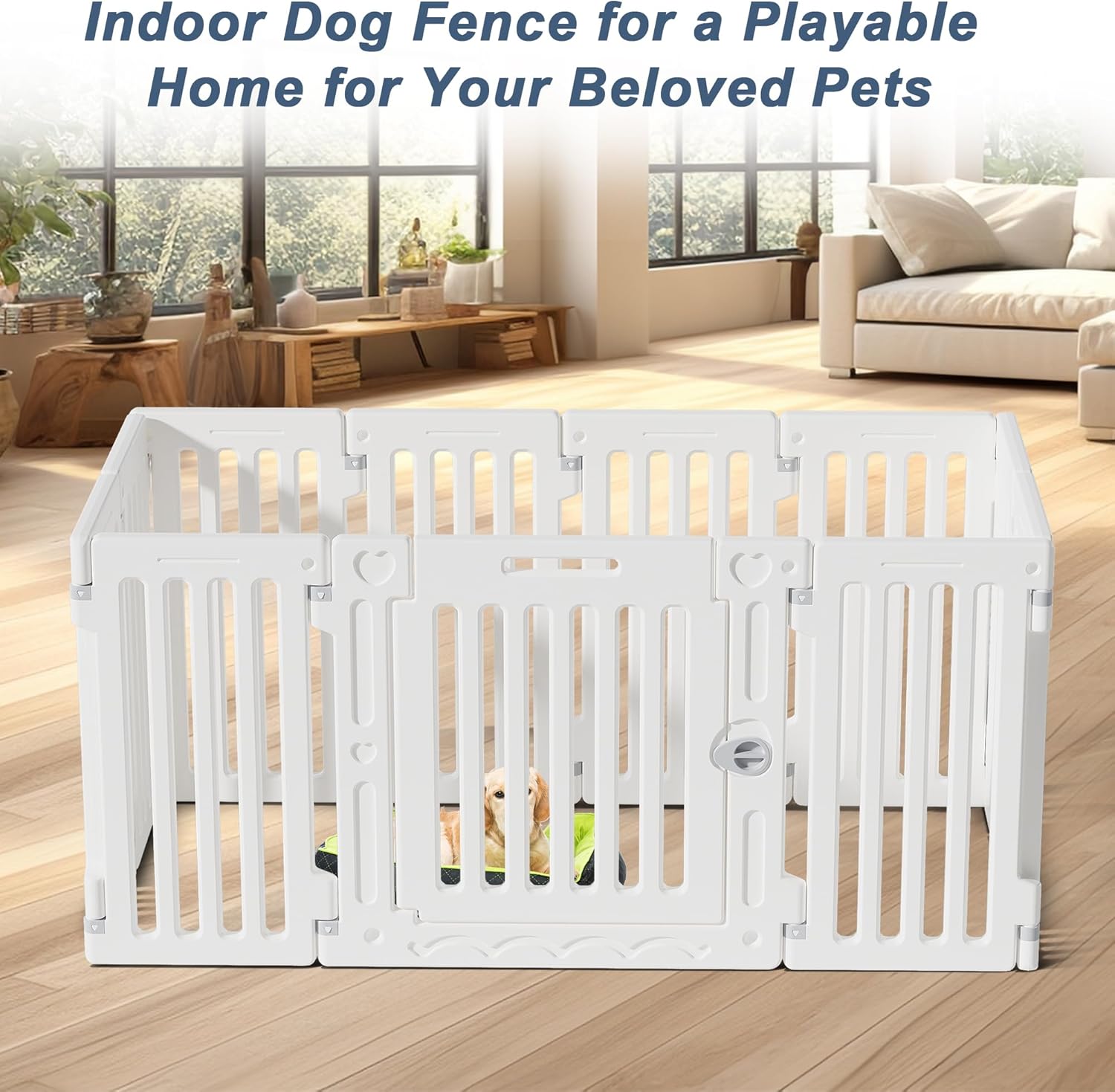 - PET-SAFE DESIGN: Our dog playpen features a secure external door lock to prevent accidental opening, making it safe for when you're out and about or when you have guests in the house. Your pet's safety is our priority!