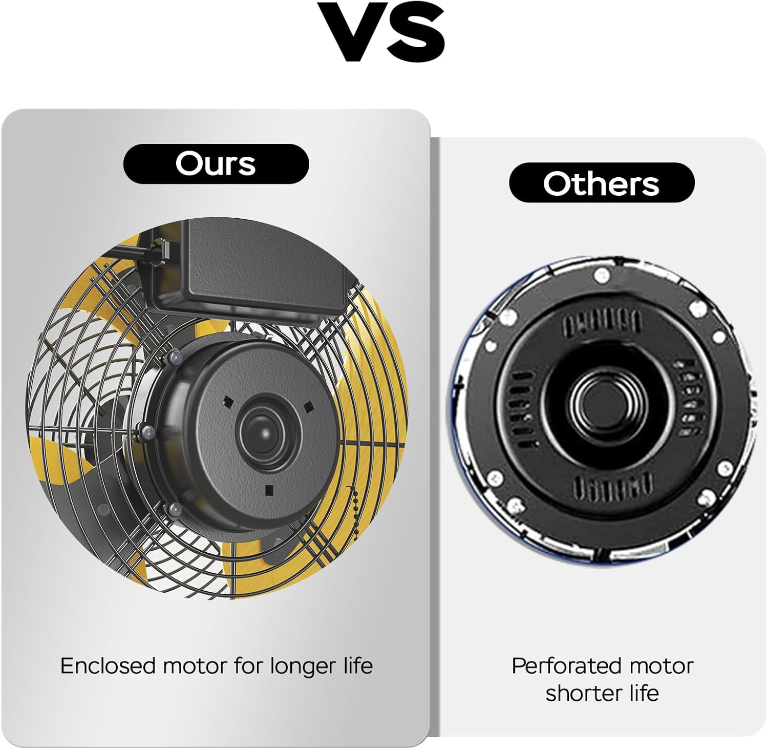 - 180°Tilt Airflow Control: Achieve the better cooling with this wall mounted fan's 180° vertical tilt feature, allowing you to direct the airflow precisely where it's needed. You can enjoy the versatile air circulation for all-season comfort. This is an industrial wall mounted fan, the noise is slightly louder than home fans, but less noisy than most of the same size industrial fans