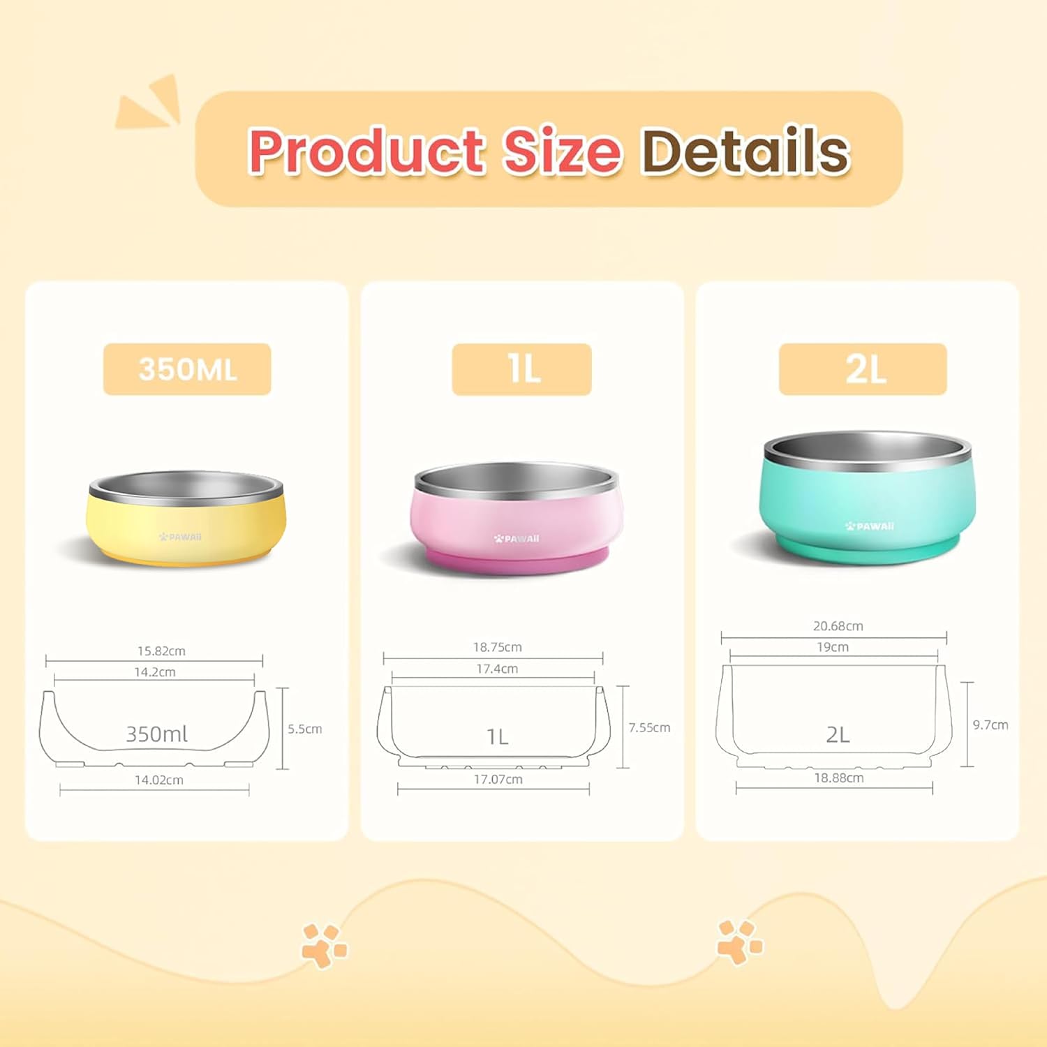 - 𝐀 𝐛𝐫𝐞𝐞𝐳𝐞 𝐭𝐨 𝐜𝐥𝐞𝐚𝐧: Pawaii stainless steel dog bowl repels oil, does not hide dirt, and can be cleaned by simple flushing. Note that unlike the 34 oz. and 68 oz. bowls, the non-slip mat is not removable and is therefore not dishwasher or microwave safe.