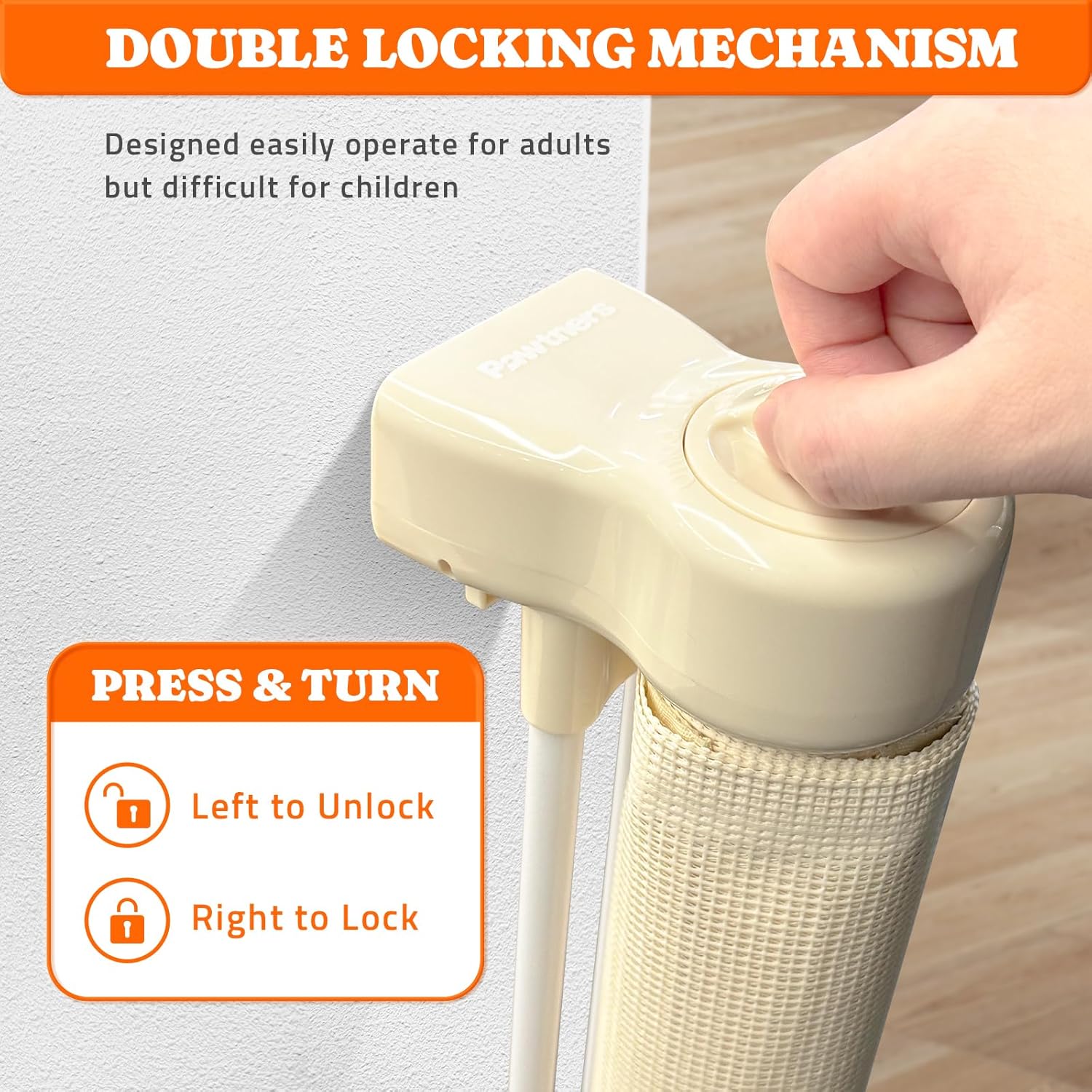 - Stable and Reliable: The Pawtners pet gate indoors comes with six high-quality rods to support the mesh baby gate, preventing it from toppling over. These rods also protect the gate's mesh from tearing and keep little ones from crawling underneath