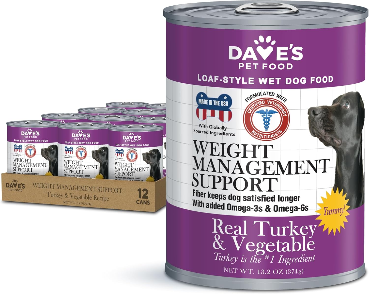 Dave's Pet Food Weight Management Dog Food (Turkey & Vegetables), Made in USA, Weight Loss, Soft, Canned Wet, 13.2oz (12 Pack)